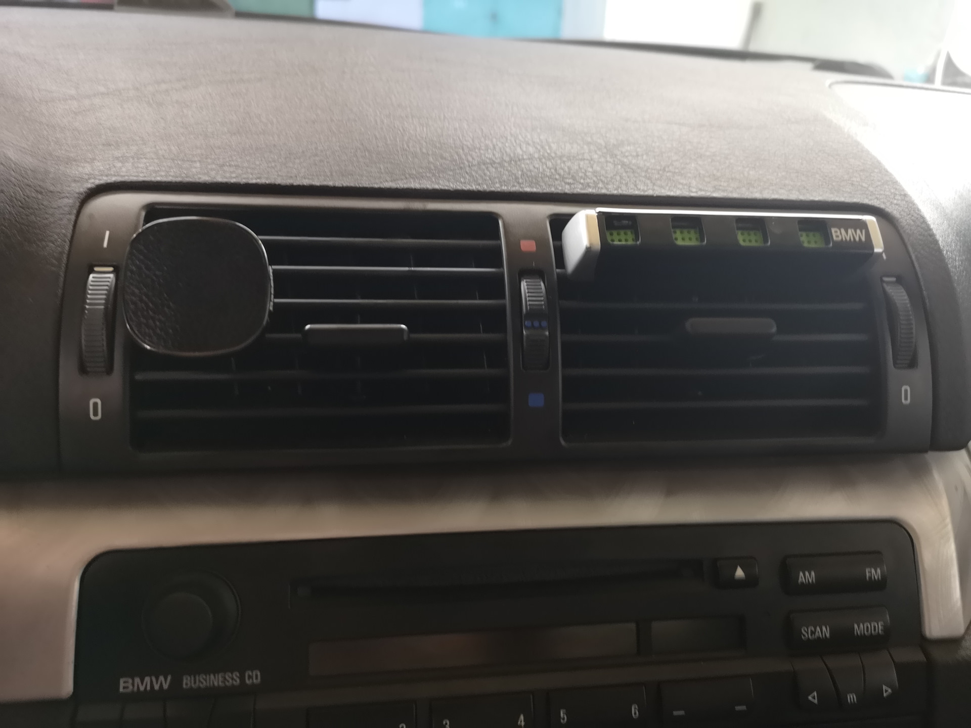 С установленной держалкой для телефона и оригинальным освежителем, кочующим уже в третью мою БМВ подряд, салон выглядит совсем привычно и уютно =)