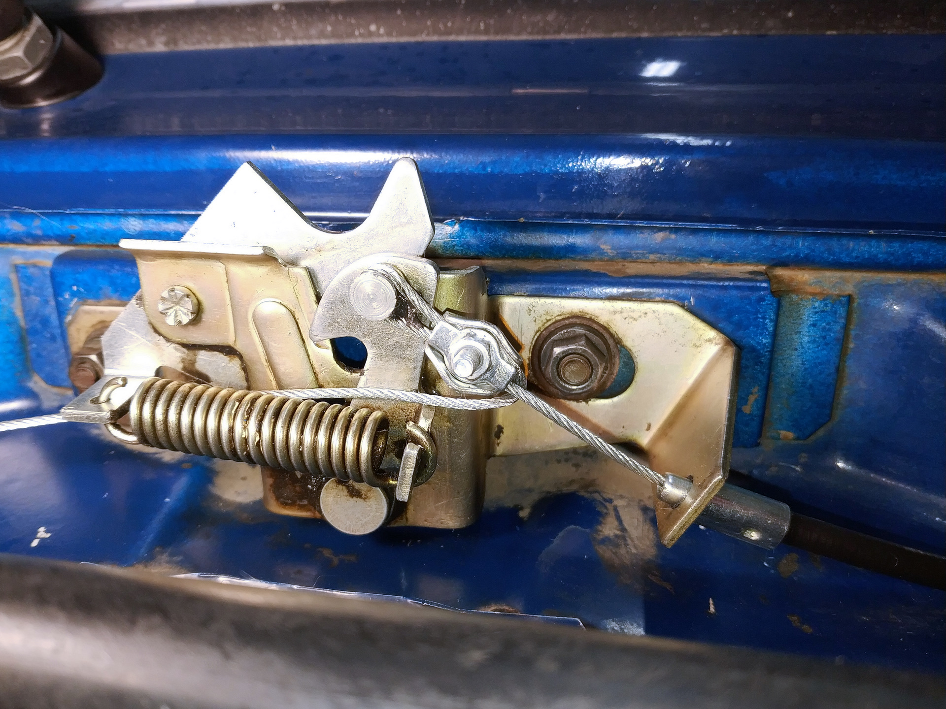 Заменил тягу замка капота на 2108 производства "Andycar" (артикул T00106), более длинную. Дополнительным плюсом данной тяги является наличие упора в комплекте. Его я поставил под бобышку троса, в рычаге. Оболочку и трос укоротил до нужной длины. Также заменил зажим троса на "Simplex". Теперь все работает отлично.