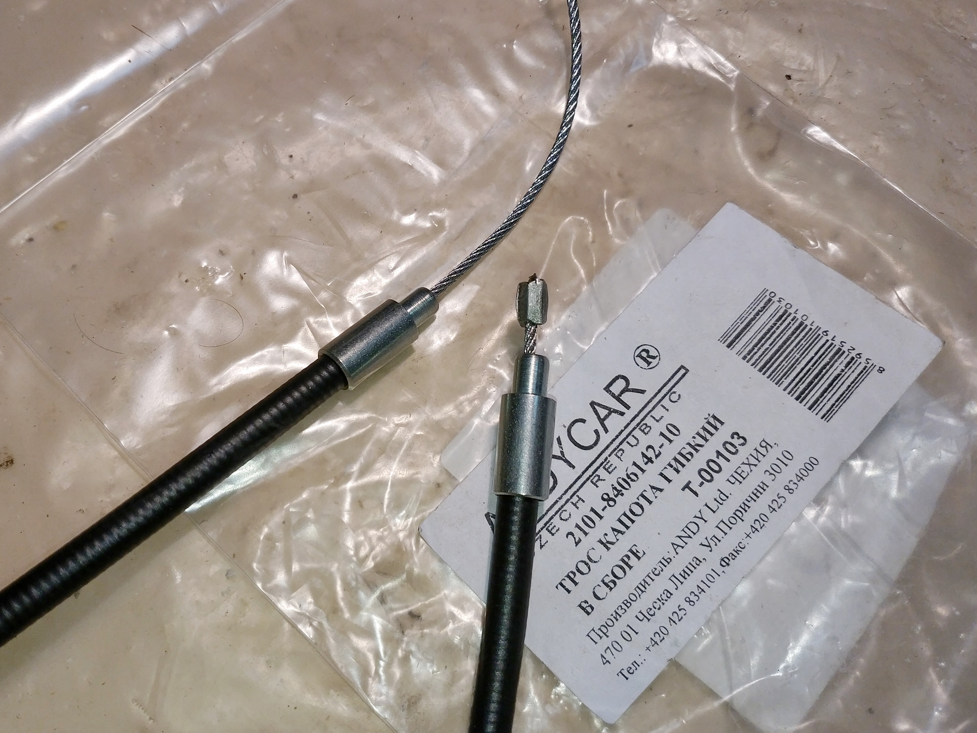 Оболочка оказалась короче штатной, и встала впритык (почему-то я не удивился этому факту). Буду менять ее — сделаю нужной длины из оболочки тяги подсоса ВАЗ-2108 (2108-1108100) на более длинную тягу замка капота от 2108, тоже "Andycar", только артикул T00106.