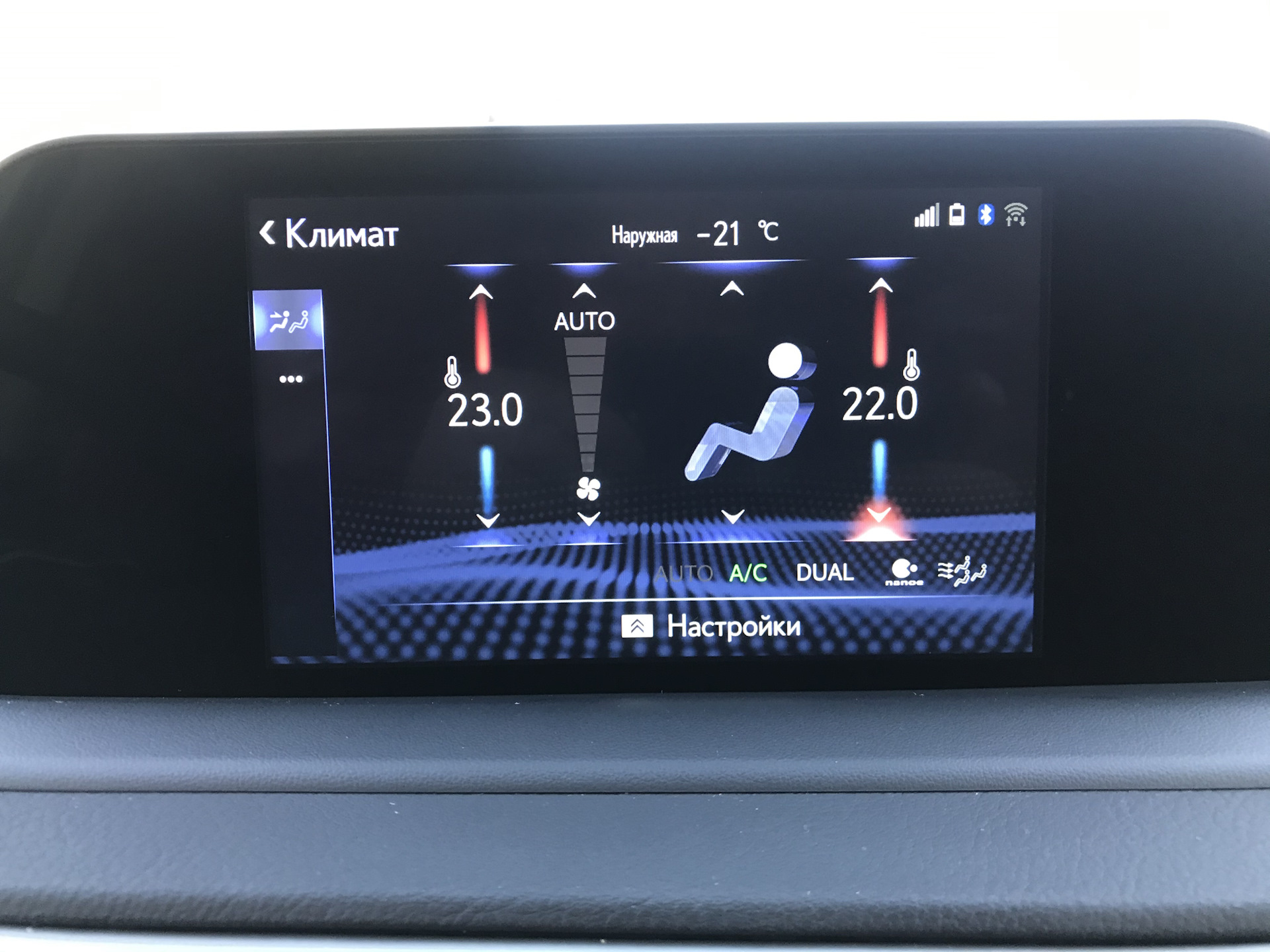 Я не встречал ни одного производителя авто решения от Lexus — в нём имеется автоматический режим управления подогревом и вентиляцией сидений, который предусмотрительно подогреет вашу самую ценную часть зимой и охладит летом, когда вы включите спорт режим от Шаманыча если кто-то его помнит))))