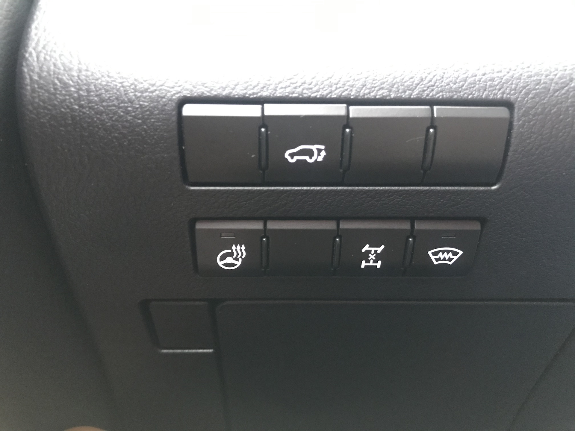На Lexus спрятаны в районе левой ноги водителя клавиши электрообогрева руля и лобового стекла, открытие багажника, включение блокировки.