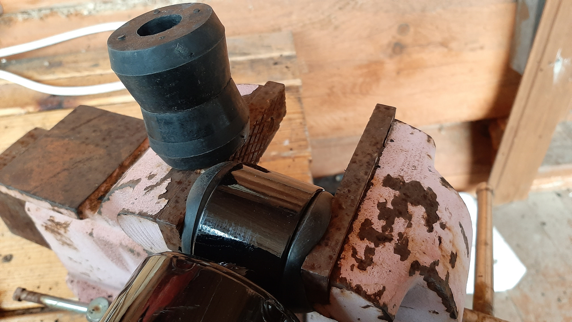 В комплект входят резиновые сайлентблоки, которые запрессовываются при помощи тисков