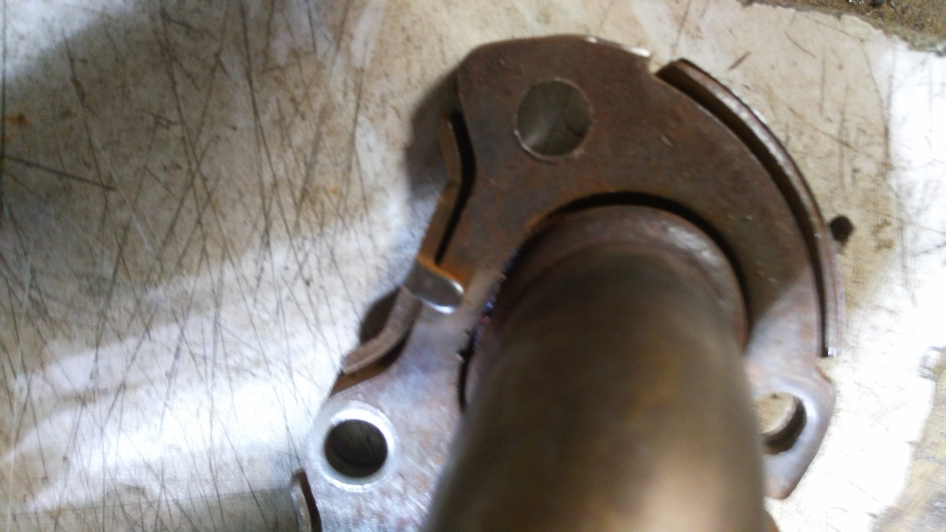 Сначала приложил прокладку на коллектор и отметил место для нового отверстия на фланце коллектора и просверлил его, затем отрезал ненужный выступ площадки коллектора.