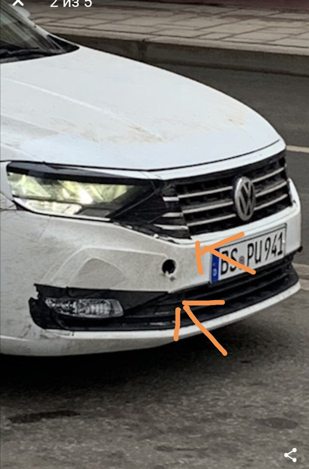 Посмотрите на бампер вблизи. Под маскировкой прорисовываются линии настоящего. Они не похожи на синюю машину, что выложена сюда