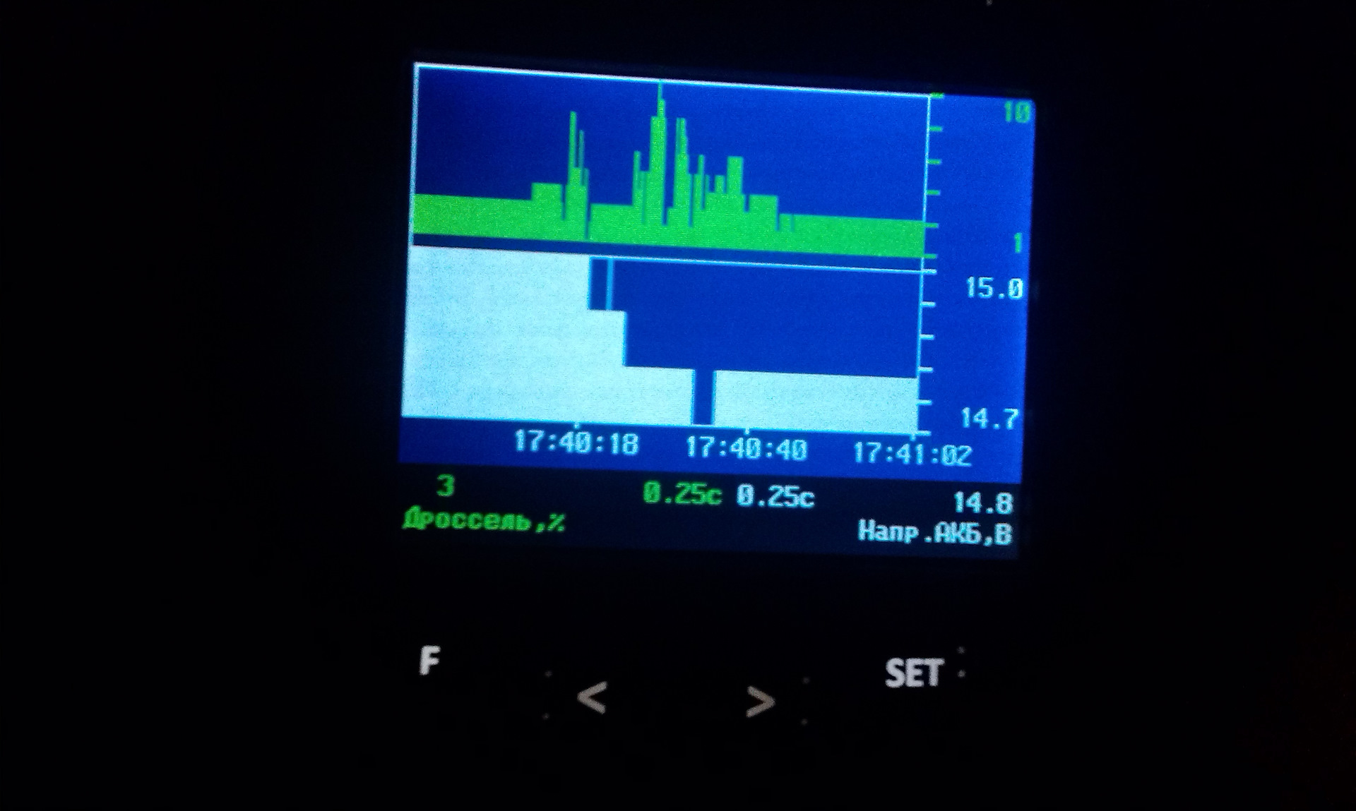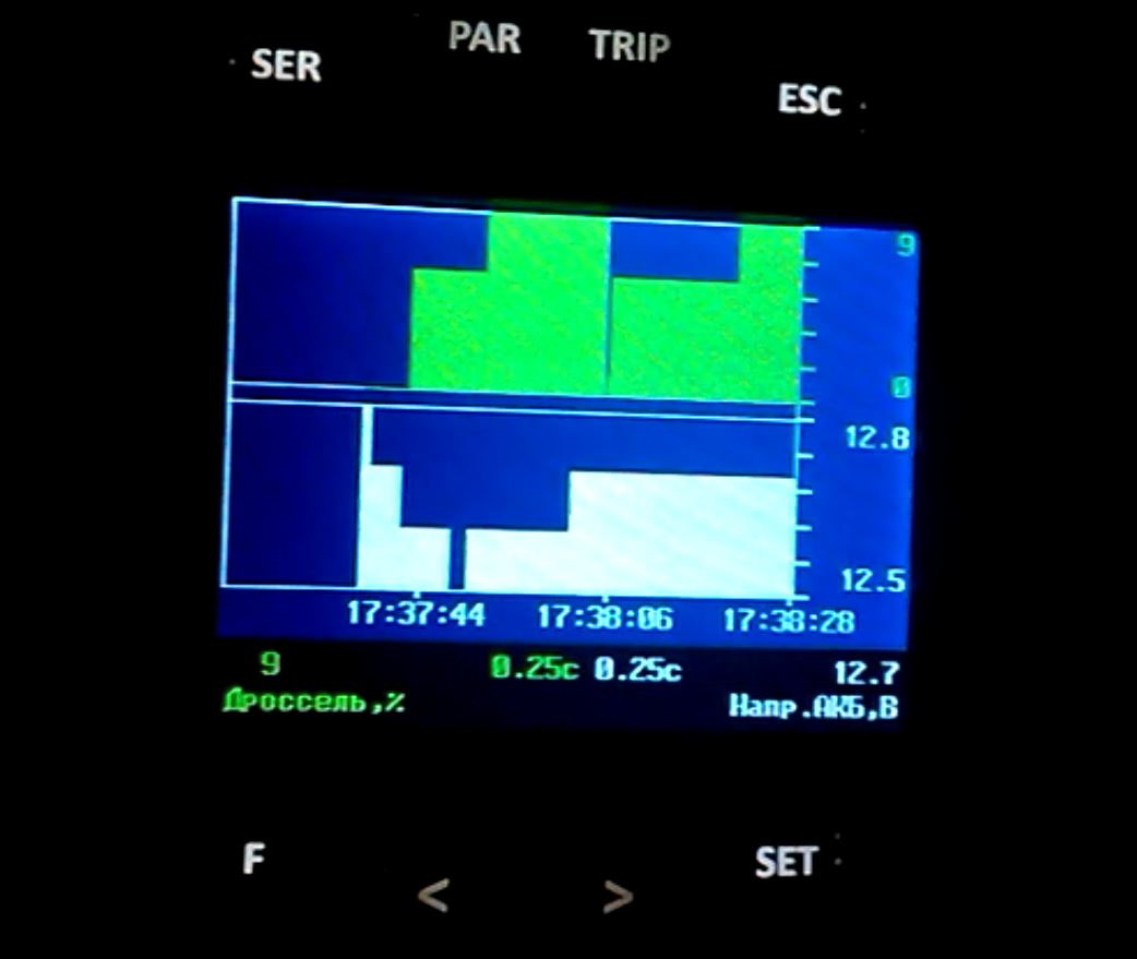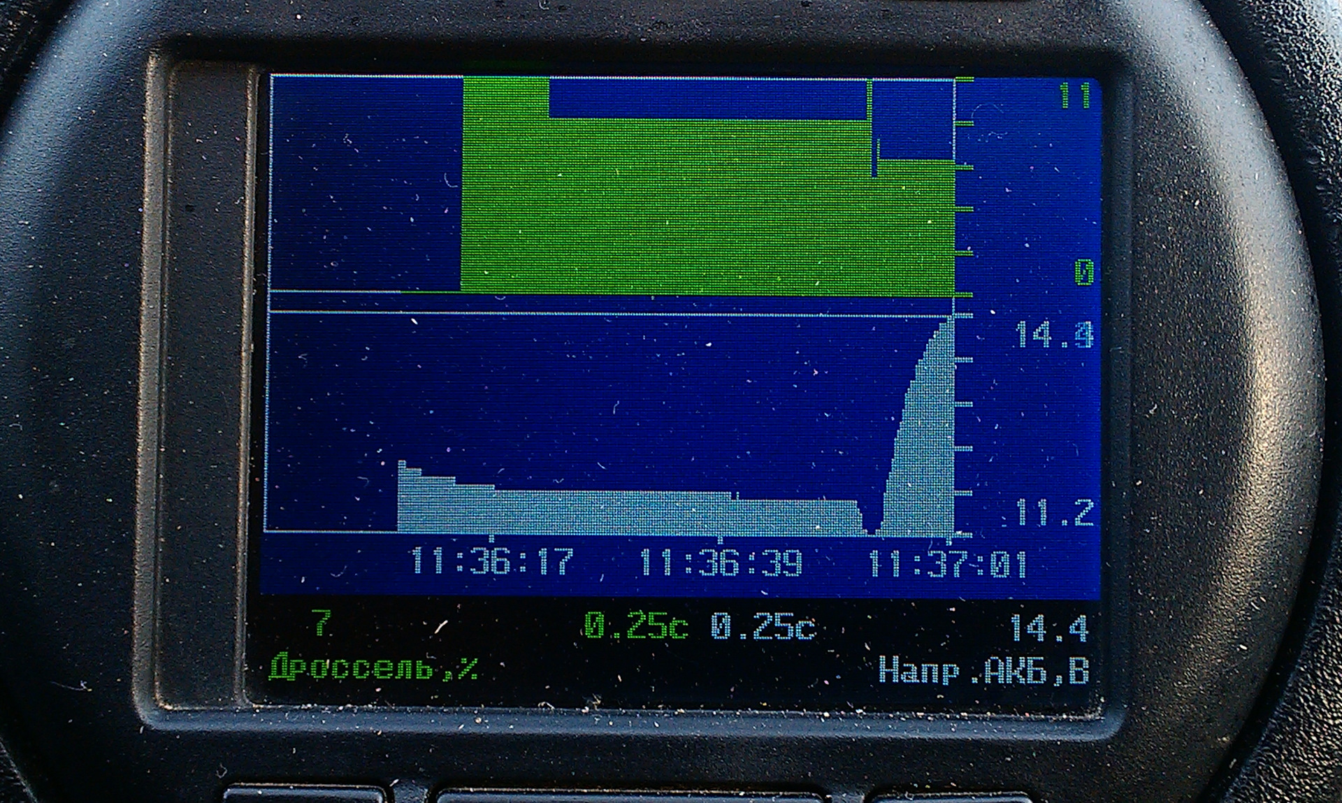 Перед пуском было 12,8В по БК, заработал бензонасос, дроссель там чего то начал крутить. напруга чуток просела.