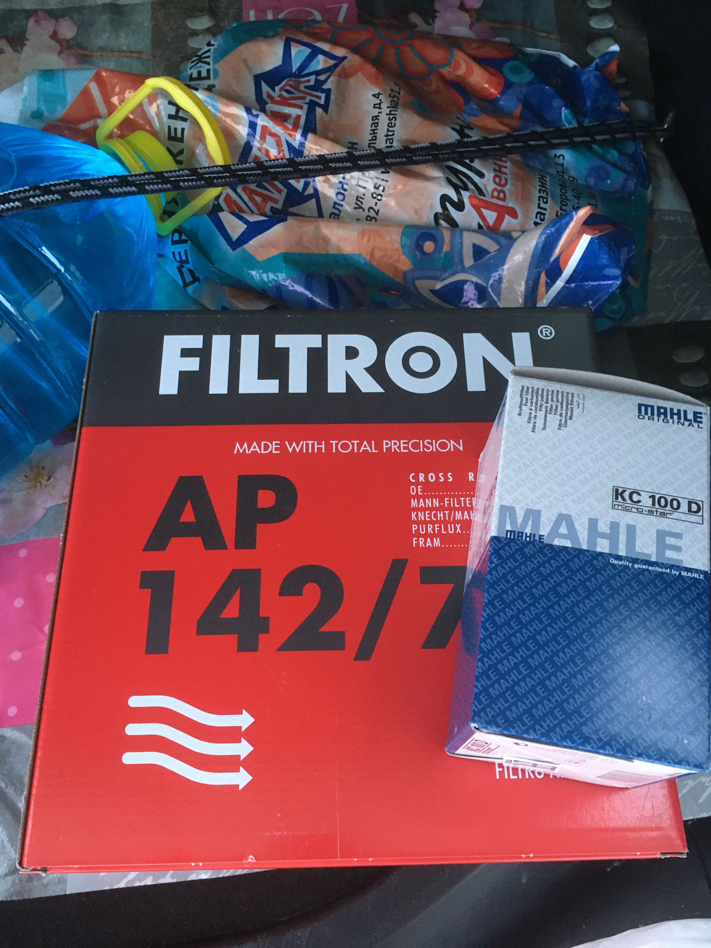 Было заказано, фильтр топливный Mahle KC-100 и фильтр воздушный Filtron . Фильтр на вид очень даже отлично выглядит и качественно, но я больше такой не закажу так как этот фильтр еле еле залез в короб для фильтров. Пришлось даже в одном месте немного подрезать резинку. Меняется фильтр очень быстро 1 минута.