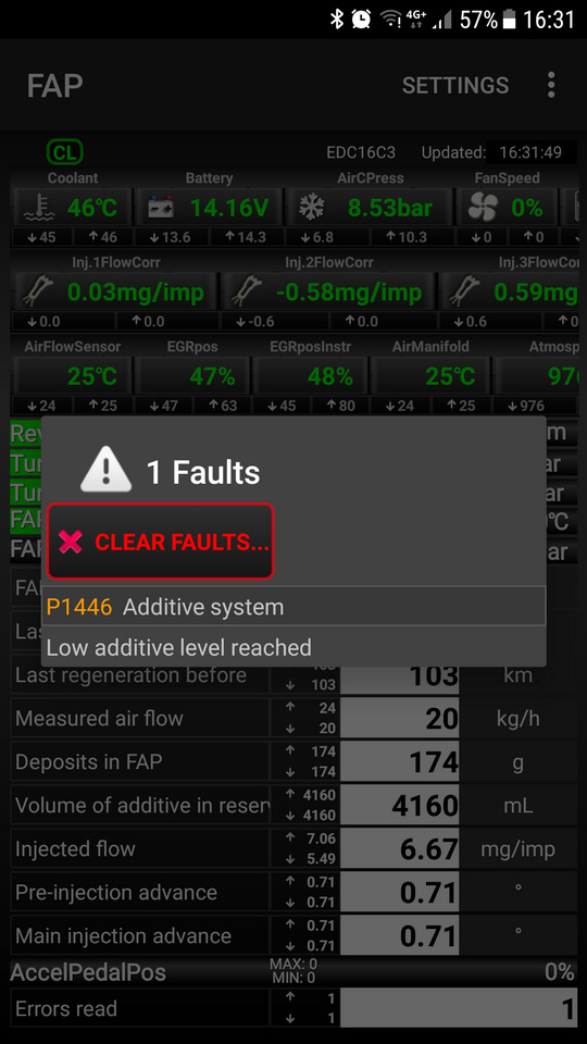 Ещё на БК выскочило предупреждение о «Низком уровне присадки для сажевого фильтра» (EOLYS).