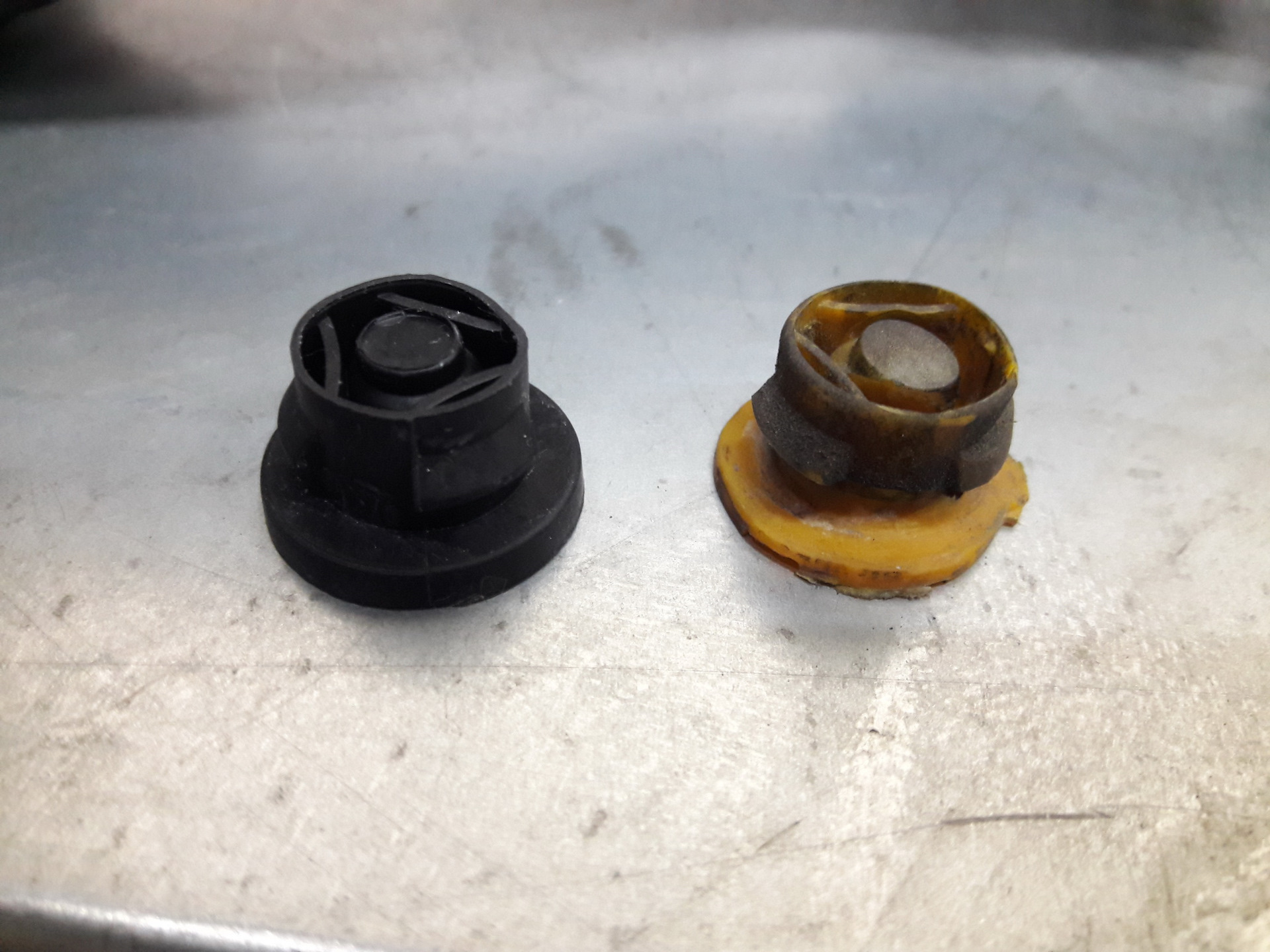 Осталось приобрести те втулки, которые находятся снизу фильтра. Они немного другие и отдельно не идут, только с кронштейном крепления воздушного фильтра (Номерок: 1436S4) (про них есть тут). Не критично и подождёт следующего ТО. За это время, может, надуться аналоги, уже видел на Ebay (www.ebay.com/itm/PEUGEOT-…GROMMET-x-2-/362541269444).