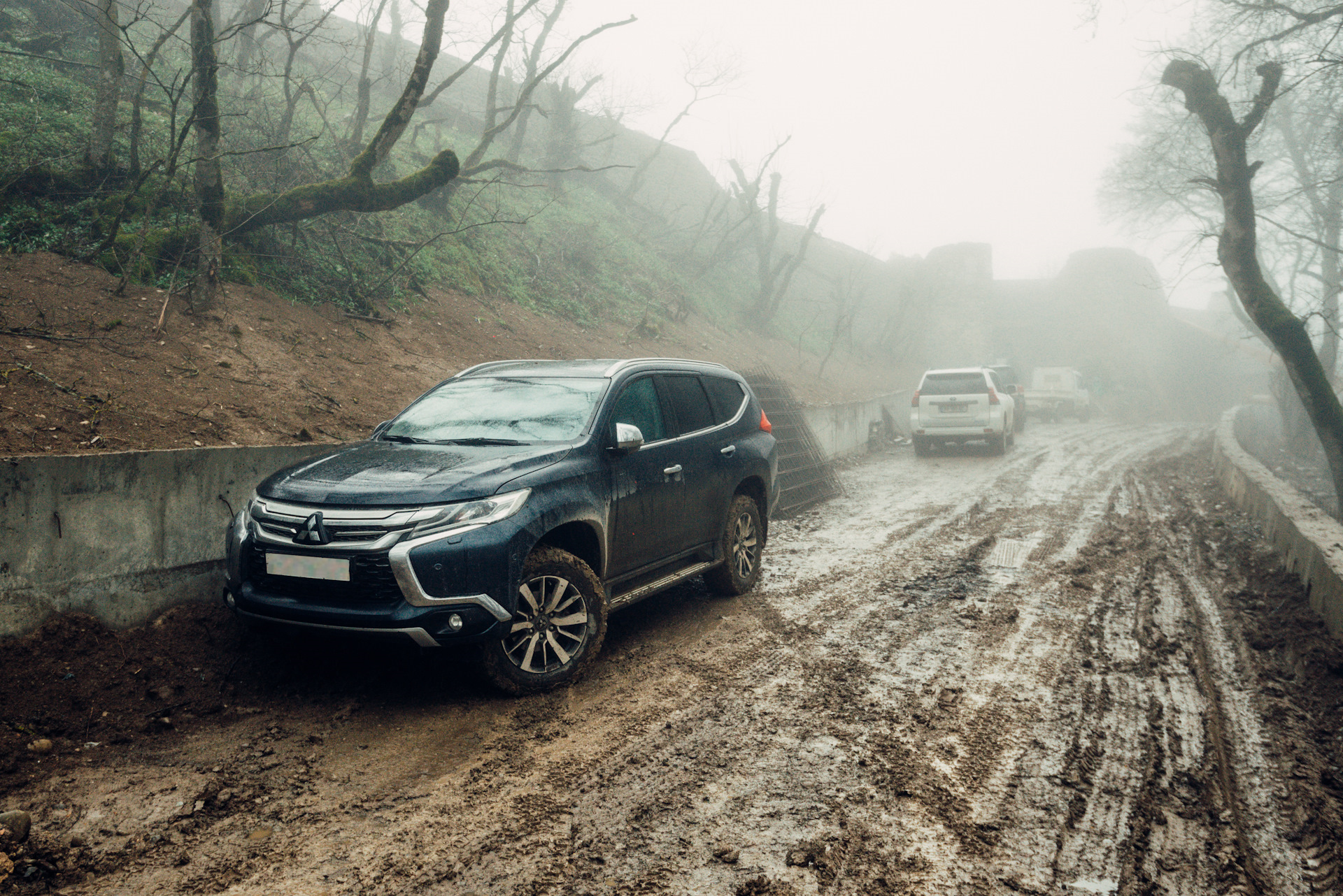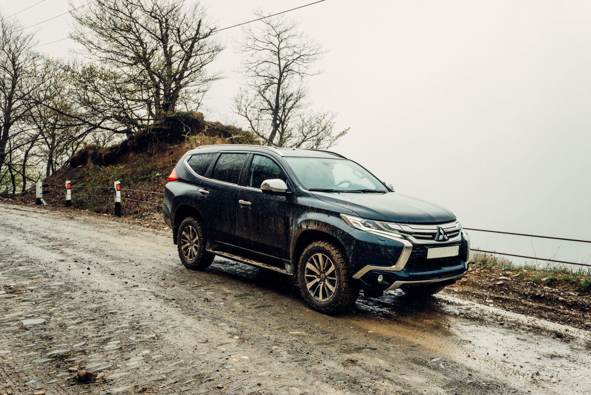 Как всегда, мы увидели в проблеме возможность и по дороге сделали крутые кадры Pajero Sport в тумане.