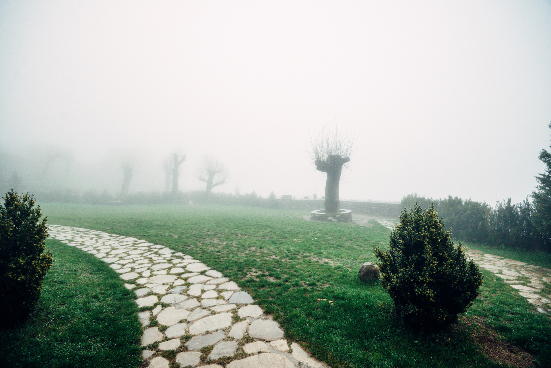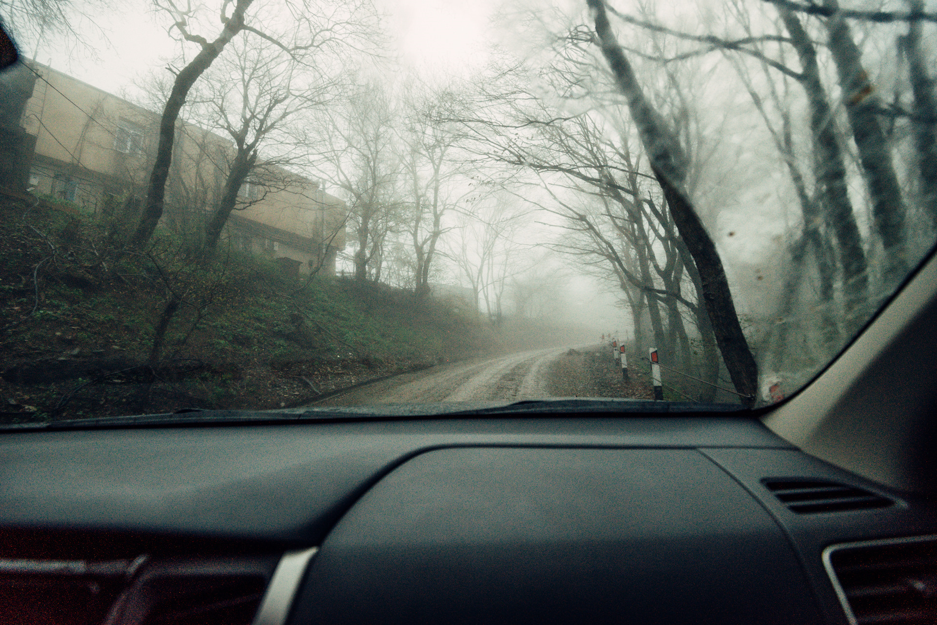 Стоило нам съехать с трассы, как на дорогу опустился туман, который уже плотно ассоциируется с Сайлент Хиллом.