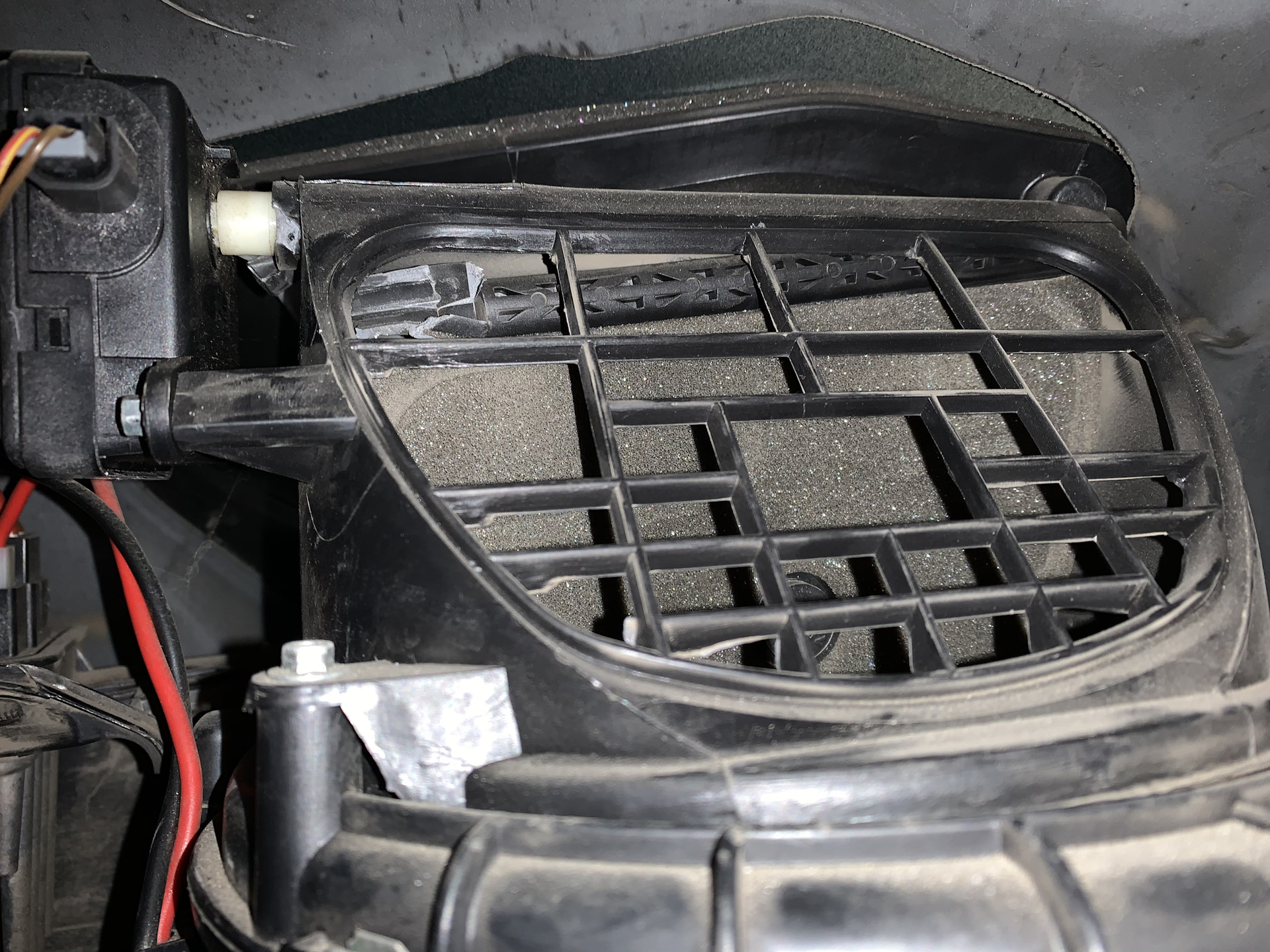 Ну и из того что было не давно, обнаружил я сломанную заслонку рециркуляции, а полез я туда по причине появившегося гула и вибрации от вентилятора печки сняв его увидел люфт самой крыльчатки, плюс большое количество налипшей грязи на лопасти ну и характерный звук шелеста при вращении вентилятора, и интернете вычитал инфу и видео о том как их разбирают, чистят продувают и вроде как иногда что-то получается и они снова начинают нормально работать, но не стал я заморачиваться с этим, и заказал новый вентилятор фирмы Nissens стоимостью 4500₽, покупать оригинал с разборки за примерно такую же цену не захотел, ну и новый оригинал по цене в 11к тоже приобретать что-то желания небыло, во всяком случае этот вентилятор уже стоит сейчас и отлично работает, так же решил и занятая самой заслонкой, мою ремонтировать уже небыло вариантов, т к нечего было ремонтировать, вал в той самой части куда заходит шток моторчика заслонки рассыпался полностью в мелкие куски, половину которых я потом выкинул со старым салонным фильтром, обзвонив все более менее крупные разборки в Ставропольском крае ни у кого их не оказалось, или были уже все сломанные, и только в одном месте мне предложили заслонку с более менее целым валом но с уже имеющейся небольшой трещиной, по цене в 500₽, у в итоге думаю почему бы не взять практически даром, заказал, приехала на следующий день автобусом на автовокзал, забрал в и повёз домой ремонтировать, предварительно начитавшись инфы по ремонту стачала залил трещину «поксиполом» потом набил отпиленный и разжатый кусок трубки от анкерного болта на 10, вроде как считается самый надежный метод, ну посмотрим, сейчас все собрано, и все работает, кстате чтобы продлить в дальнейшем жизнь заслонки заказал я ещё у Олега понижающий стабилизатор на моторчик, сейчас он тоже установлен и работает, кстате кто ещё этого не сделал, настоятельно рекомендую, вещь нужная тем более для тех у кого заслонка ещё не ломалась, вобщем кому интересно, подробно отвечу в коментах!