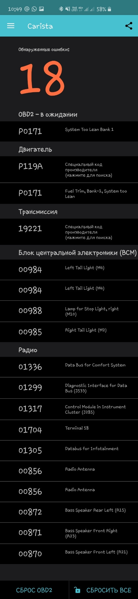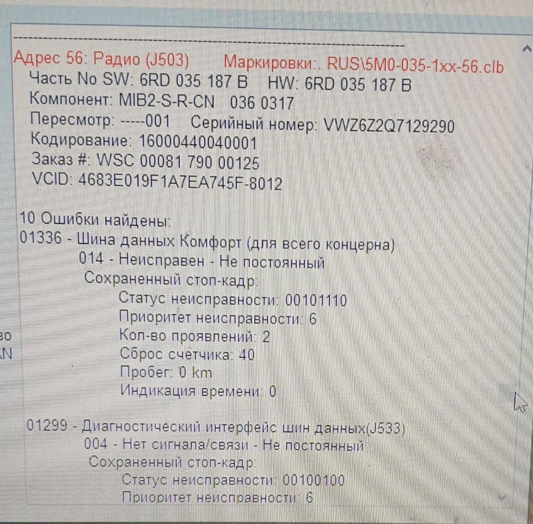 Прочитал сегодня ещё раз ошибки и вылезли ещё. Радио и тд, возможно из за магнитолы или камеры заднего вида.