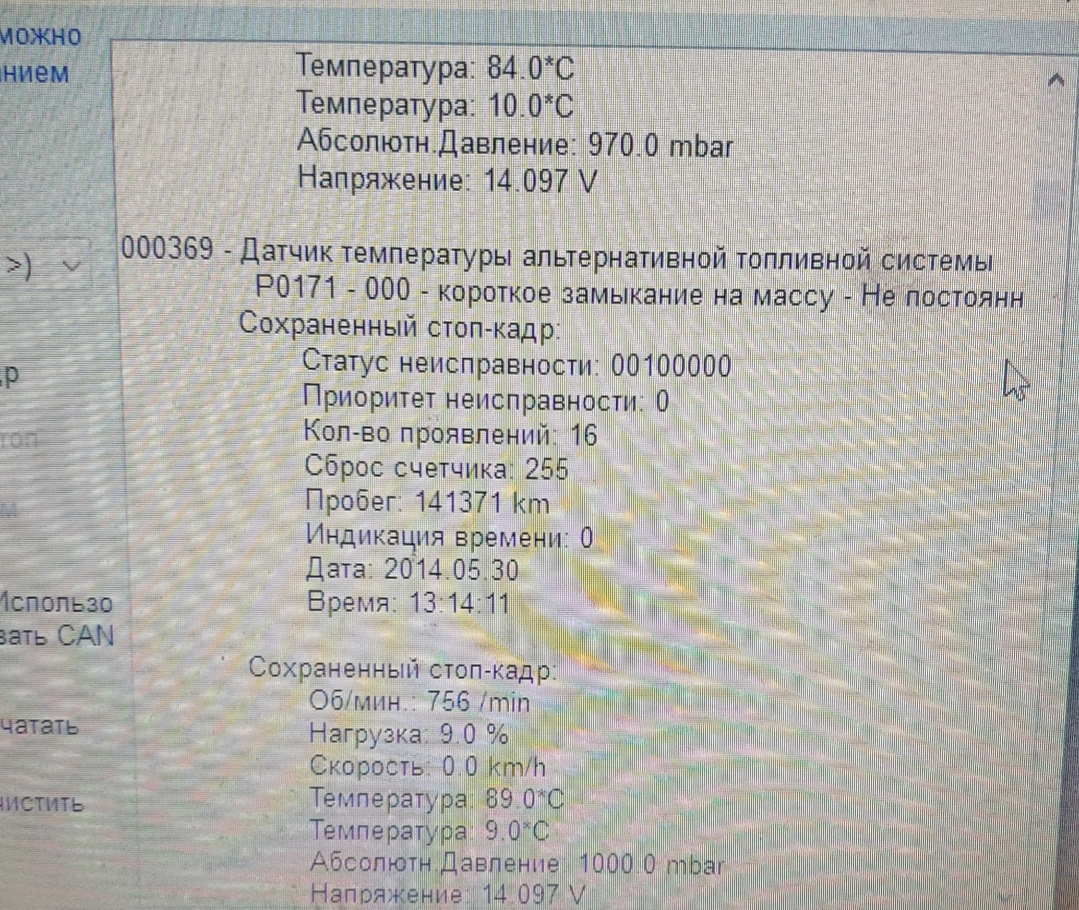 000369 Датчик Температуры альтернативной топливной системы P0171-000- короткое замыкание на массу- Не постоянн.
