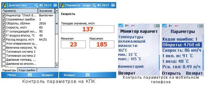 1. Выводить основные параметры работы двигателя в режиме реального времени.