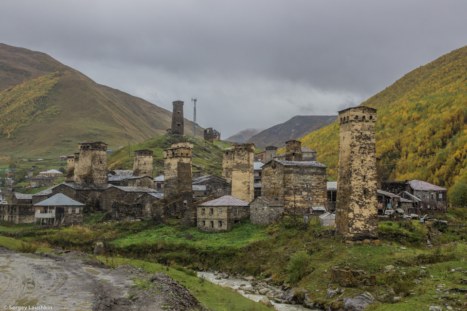 Только у самого Ушгули небеса, наконец, сжалилась над нами и хотя бы закончился дождь. Но прогноз говорил что это не на долго. Поэтому погуляв по селу и посетив Церковь Успения Святой Богородицы, мы решили что к леднику горы Шхара не поедем. Все равно мы там ничего не увидим сегодня. Последняя надежда оставалась на перевал Латпари, высота которого намекала на то, что возможно он поднимется выше этой дымки над самыми облаками и может с него мы увидим Главный Кавказский хребет.