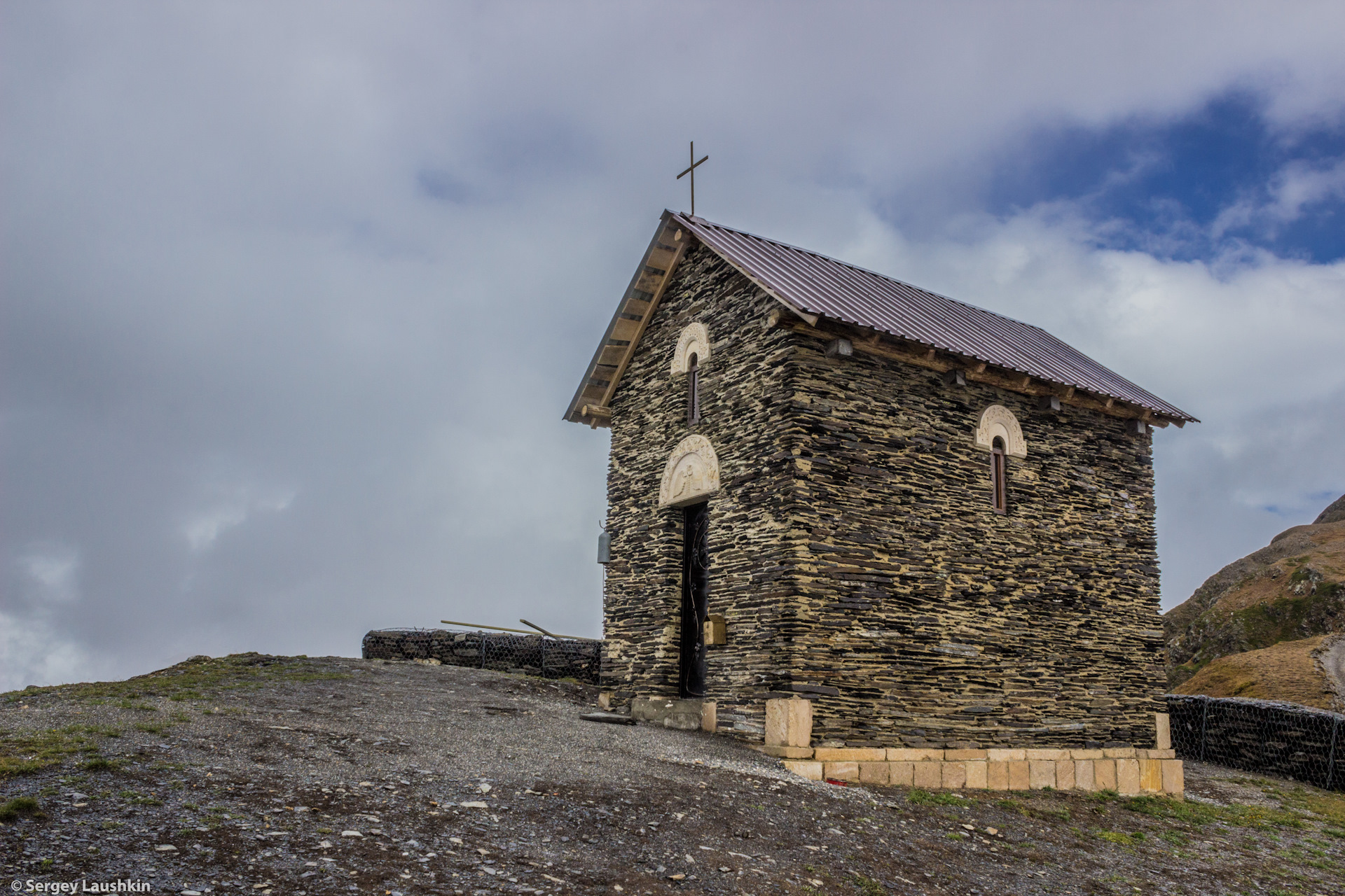 Перевал высотой 2830 метров берем довольно быстро. На вершине находится только что построенная маленькая церковь и озеро. Но никого из людей нет.