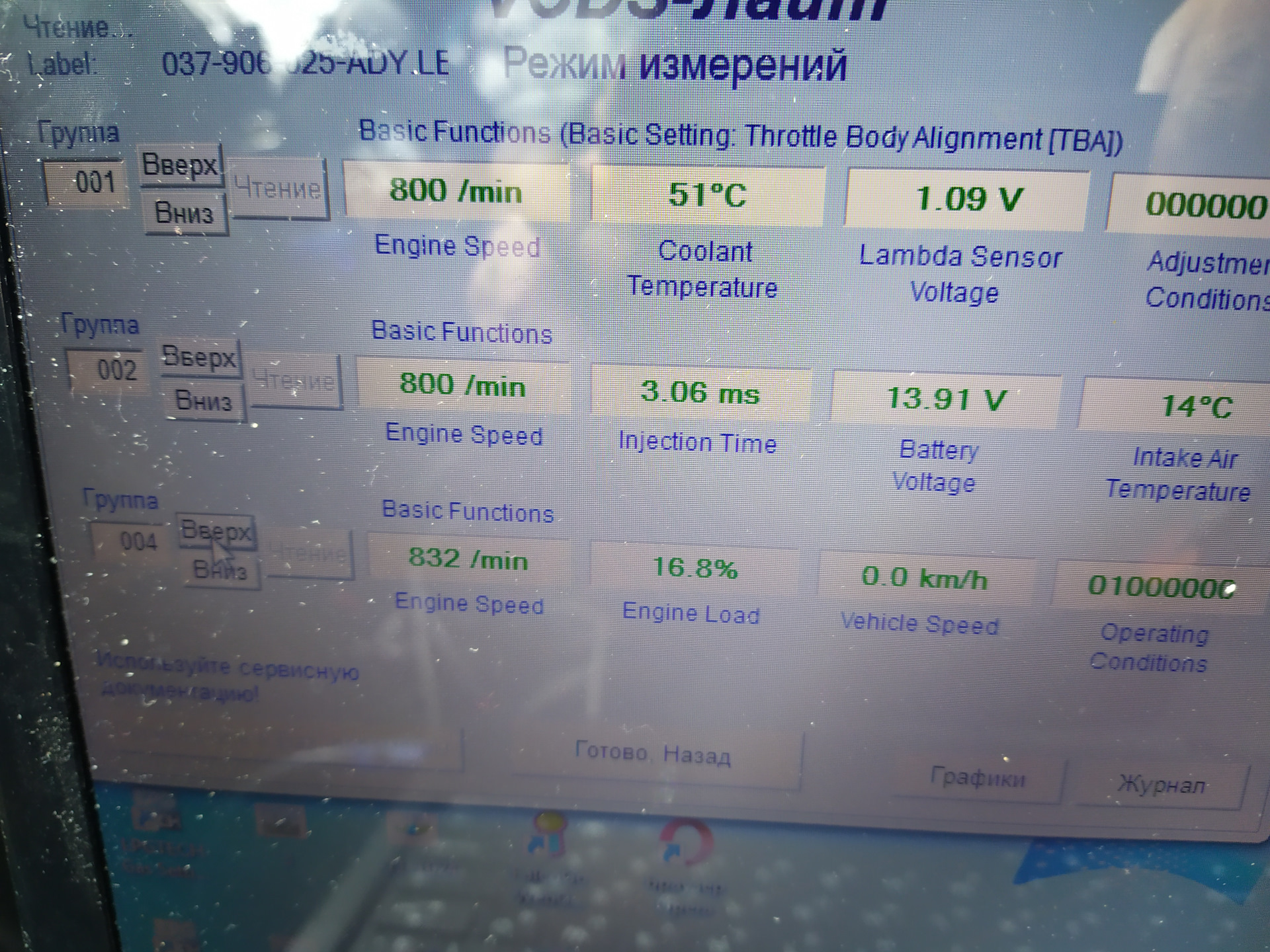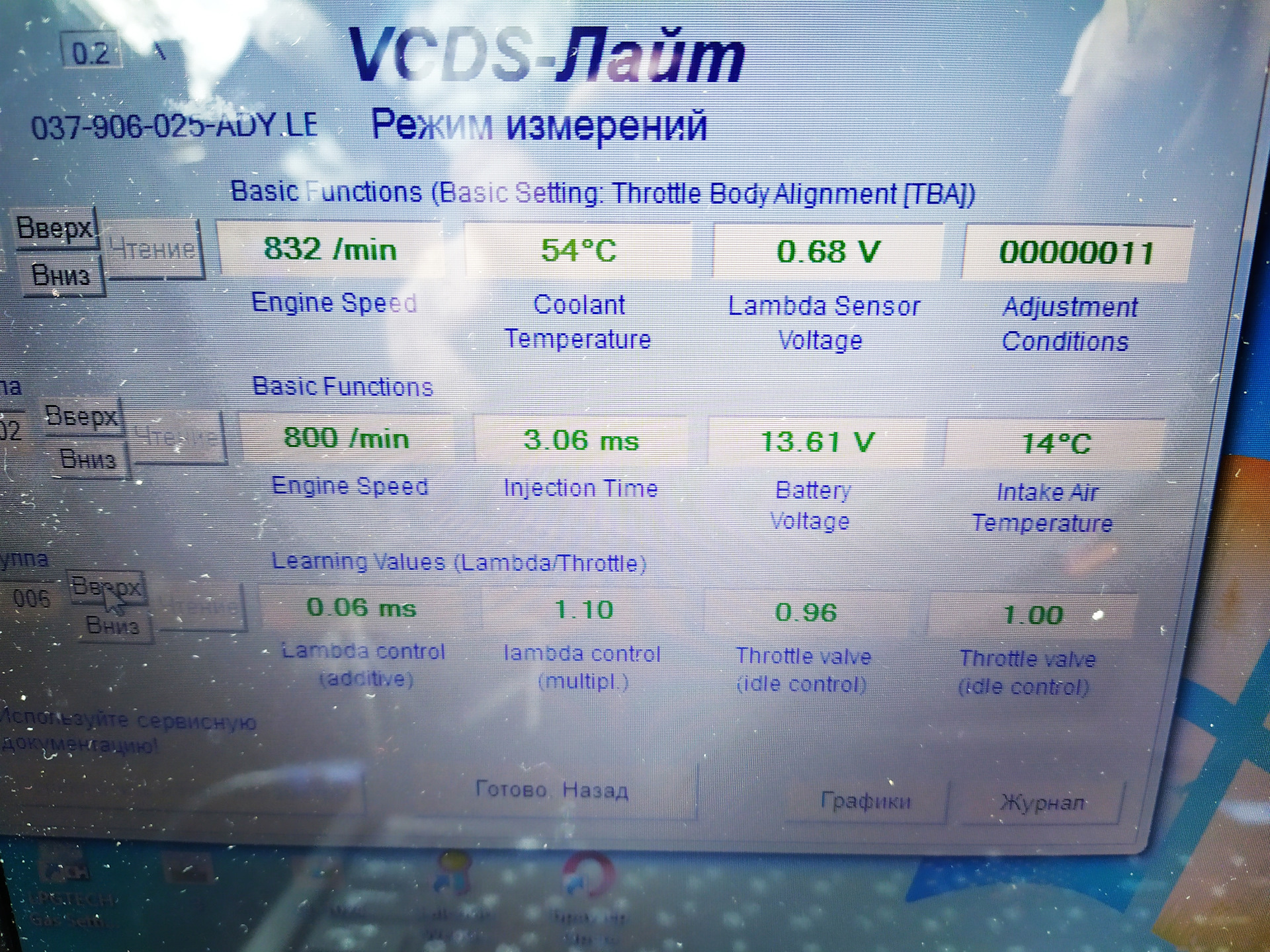 Сегодня забрал ноут с ремонта, месяц не включался и сразу подрубил диагностику — ошибок нет по ДВС. Прогреть полностью не успел, но пару параметров снял)