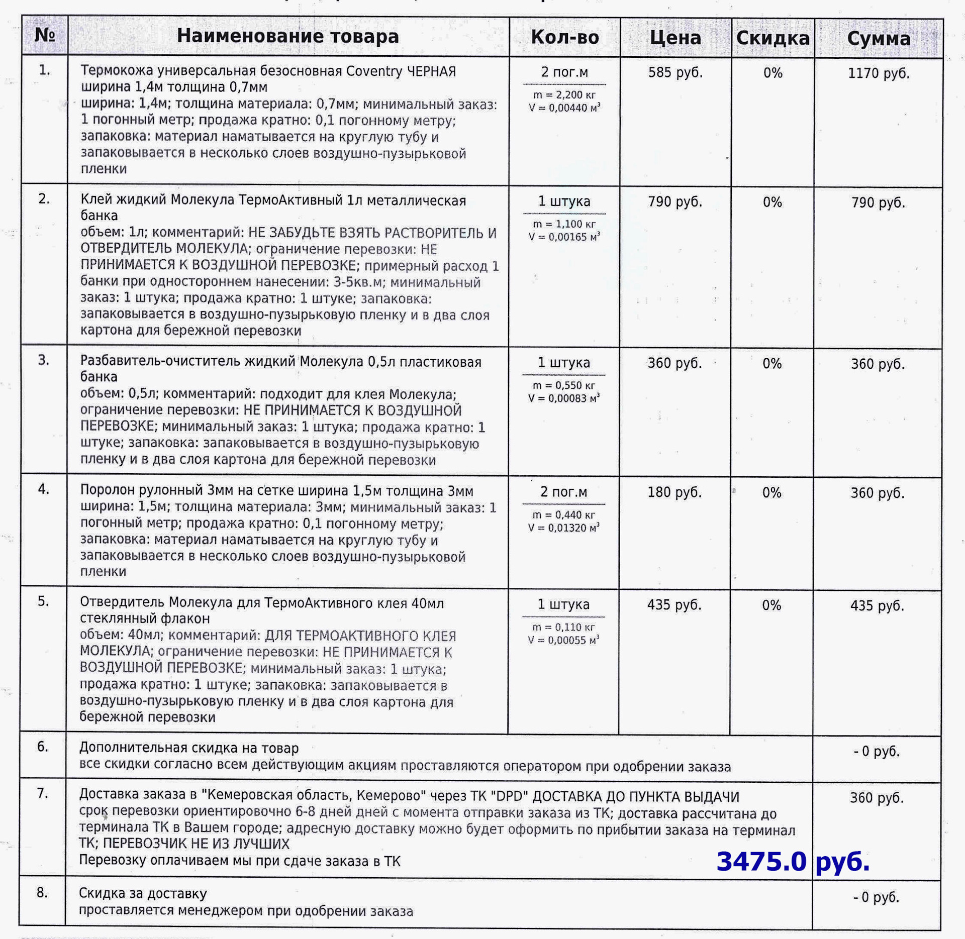 Заказал все на SHUMKA.RU, сервисом доволен вполне, но цены высоковаты! Материалы обошлись в 3115 руб. (заказал пока по 2 метра кожи и поролона для экспериментов) и плюсом 360 руб. за доставку.