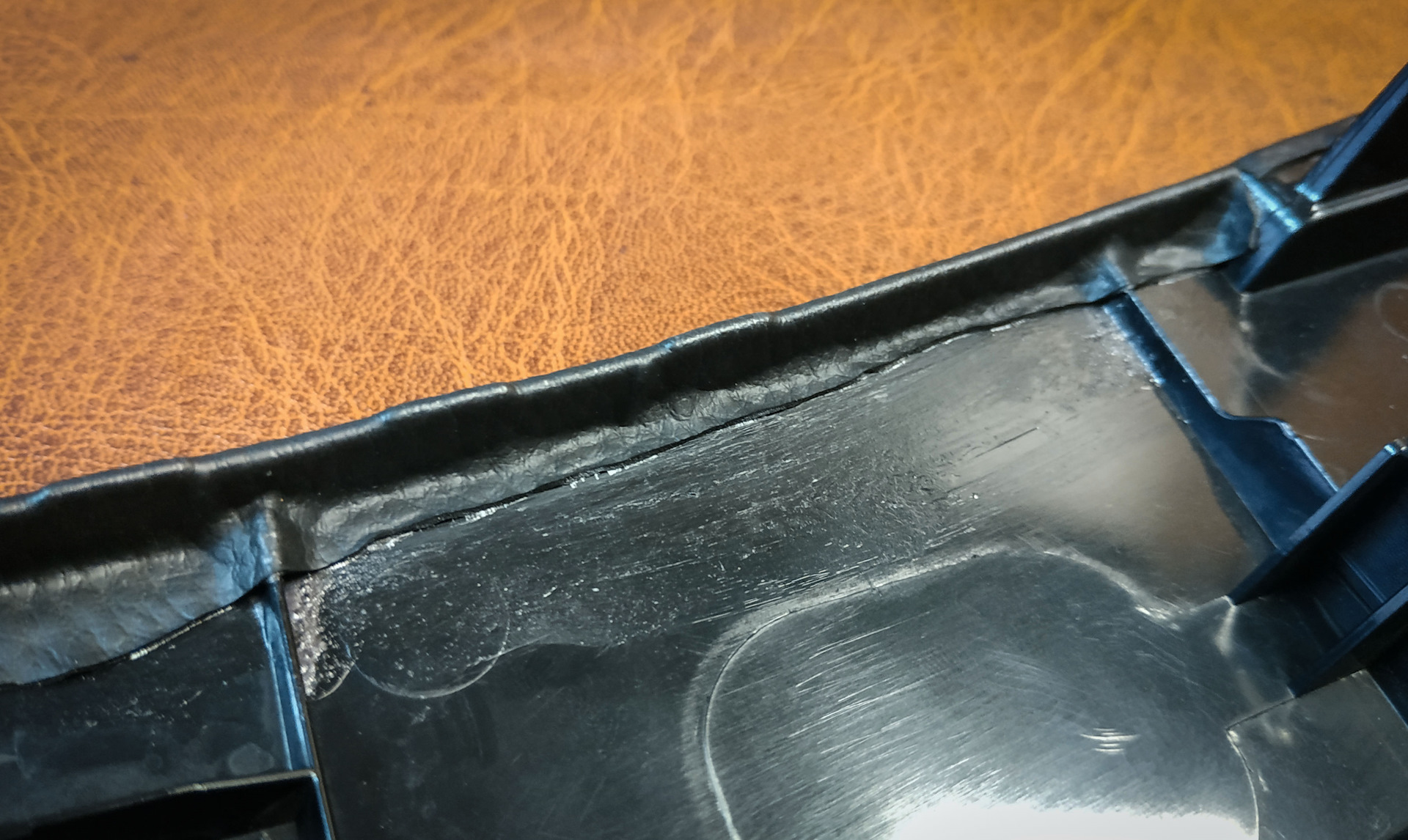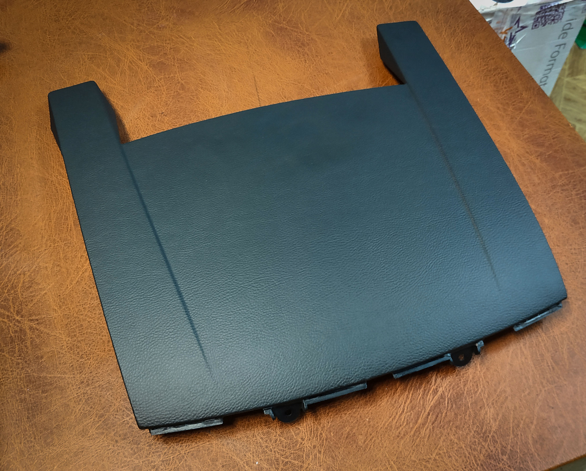 А кратко: хотел сделать мягкую, с поролоном внутри — но не получилось, тут опыт нужен. Пришлось сдирать клей и кожу — оказалось оооооочень сложно, держит намертво. Стал делать обычный вариант без мягкой подложки и опять лоханулся — забыл зашкурить грубой наждачкой и наклеил на гладкую поверхность, а так нельзя. А может и просто плохо удалил остатки клея. В итоге вздулись пузыри. Сейчас для экспериментов есть вторая крышка с бардачком, но нет помещения (геолог у нас продал квартиру и окупировал в офисе мою мастерскую). Краска и растворитель с очистителям ооооочень вонючие и делать это в кабинете никак не получится. На фото неудачный вариант с нарушением технологии.