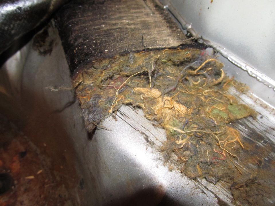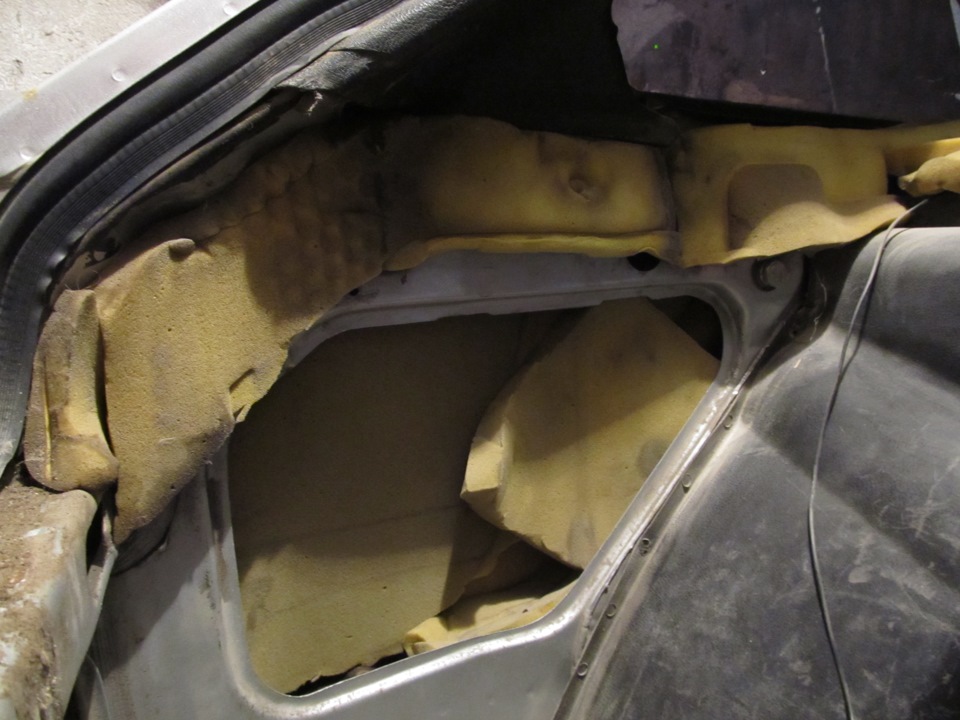 Стандартная шумка уже начала гнить местами, так что самые гнилые участки с лёгкостью оторвались, обнажив, в принципе, неплохо сохранившийся метал. Всего пара рыжиков в нескольких местах.