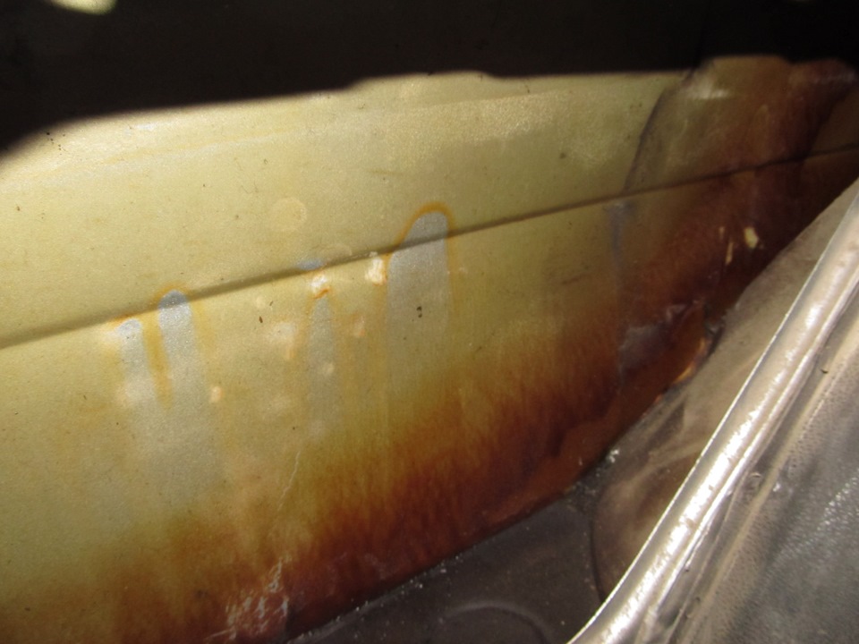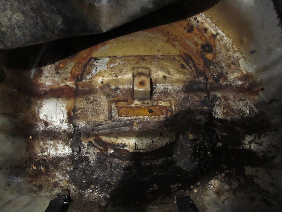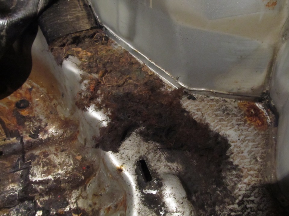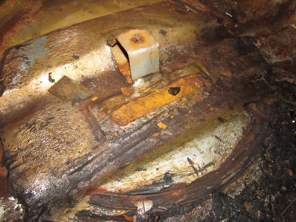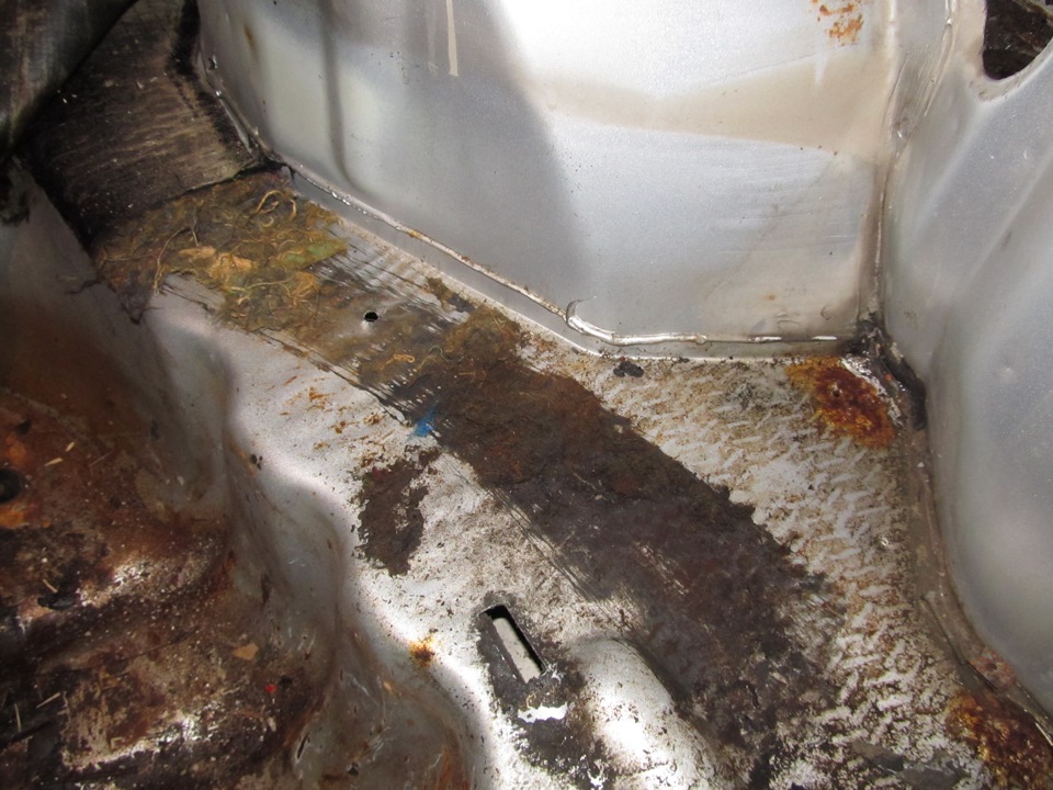Самое печальное и подгнившее место — это выштамповка под запаску. Видно что вода там собиралась и сделала своё дело — пол подгнил.