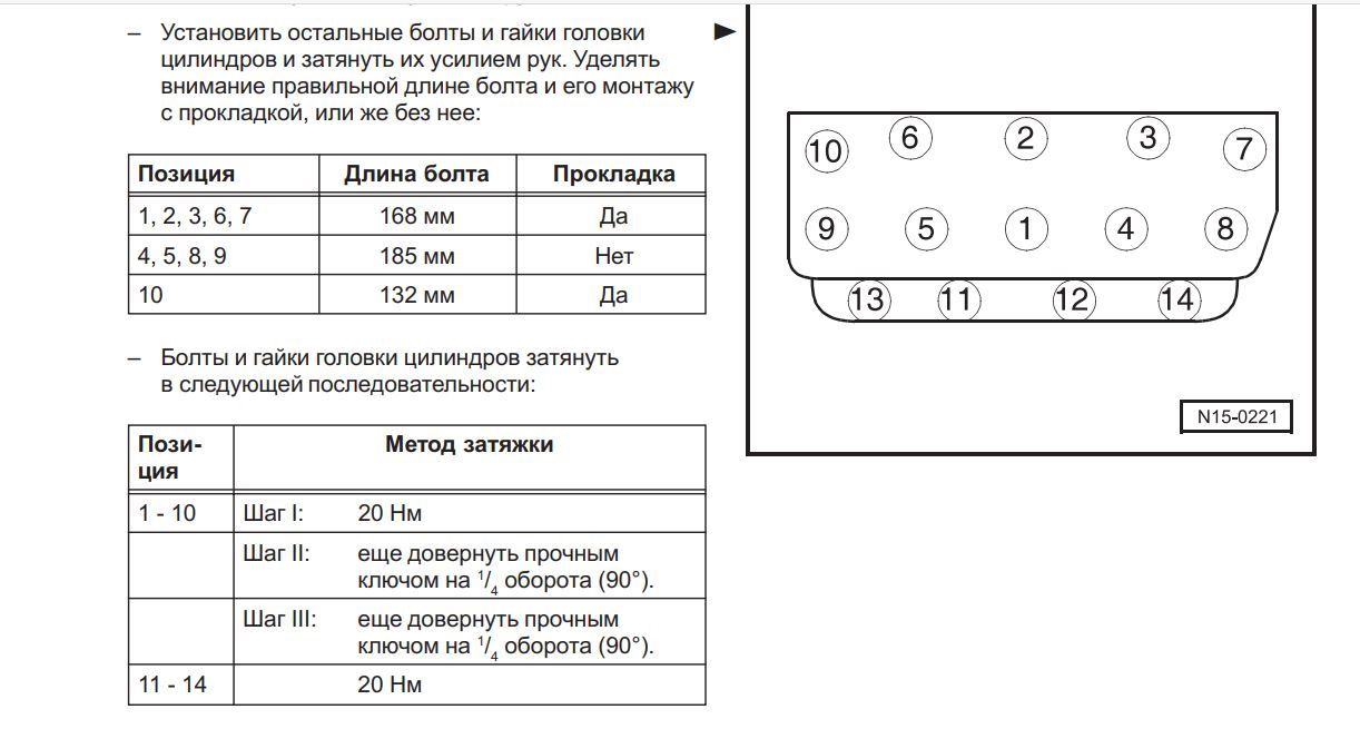спасибо! а скажите, реально что на АМЕ болт гбц всего 20 Нм плюс да оборота по 90 градусов? не мало? и вот вопрос — все болты разной длины у гбц? и ещё — написано позиции такие-то с прокладной, позиции такие-то без прокладки? как это? я, простите, не понимаю. — 14 болтов и под четырмя болтами нет прокладки? она же прокладка целиком покрывает блок цилиндров же. Спасибо. если кто пояснит. А еще ответы есть момент затяжки болтов гбц сначала 40, потом 60 Нм и плюс два раза рл 90 градусов. Вот тебе и интернет, ничего не понять.