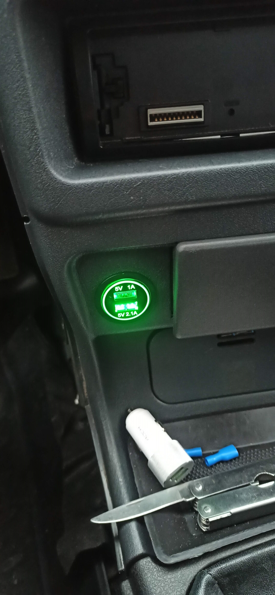 Тоже взял такую же, только с оранжевой подсветкой и врезал справа от пепельницы. Удобная штука в машине, особенно когда телефон ставишь в роли навигатора.