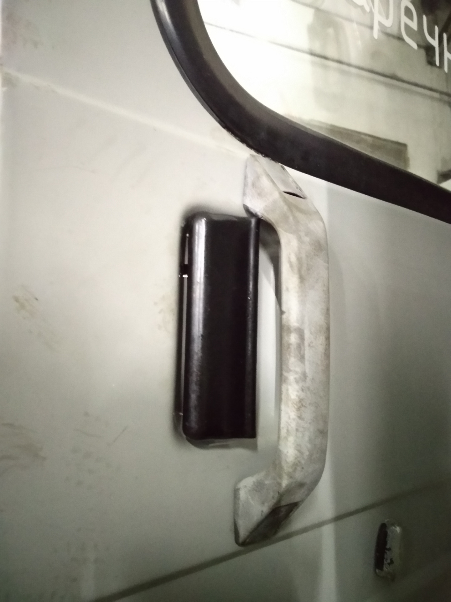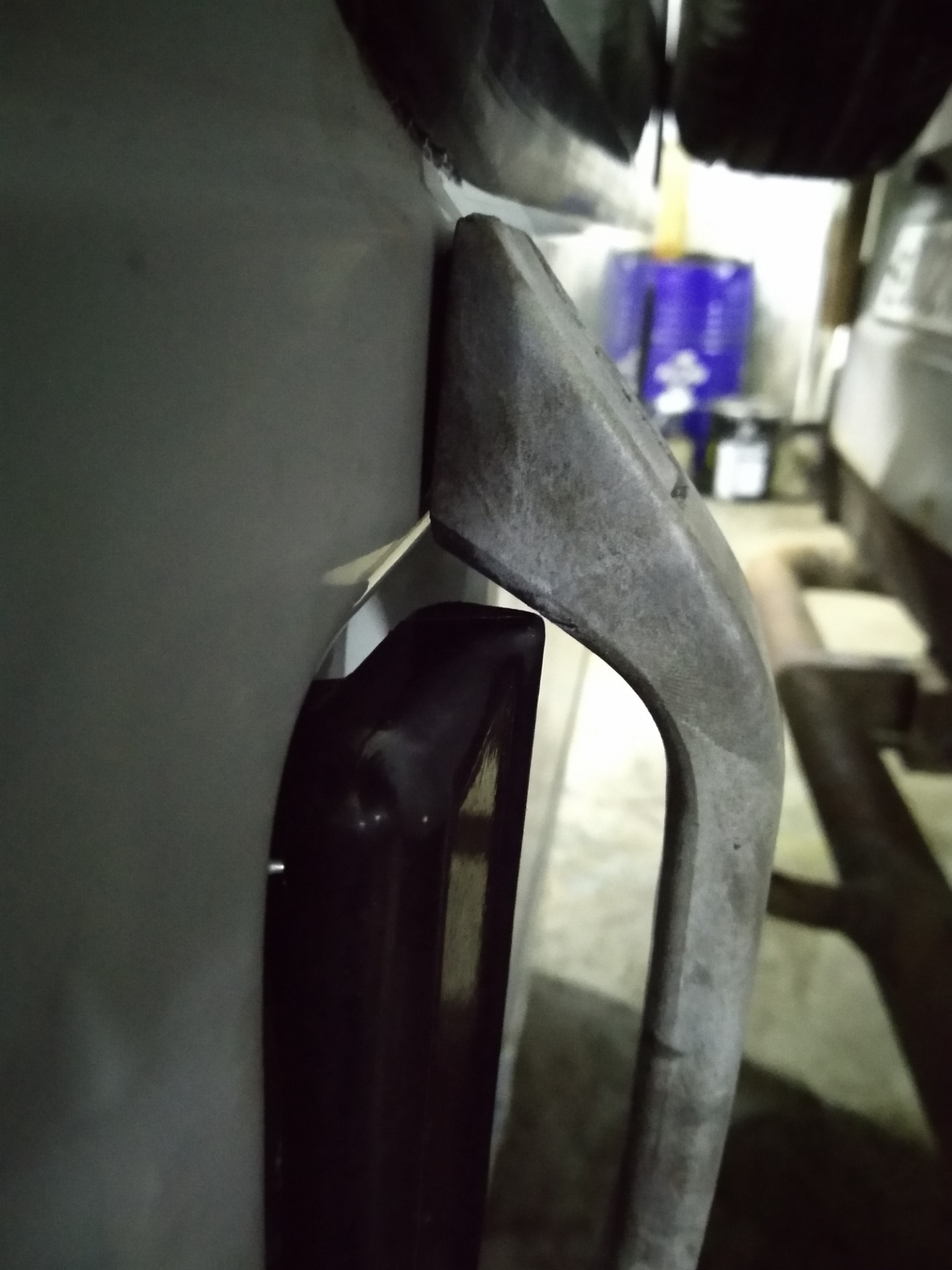 Заодно поправили ограничитель/отбойник двери. Понятия не имею с какой силой надо открывать дверь, чтоб так загнуть!