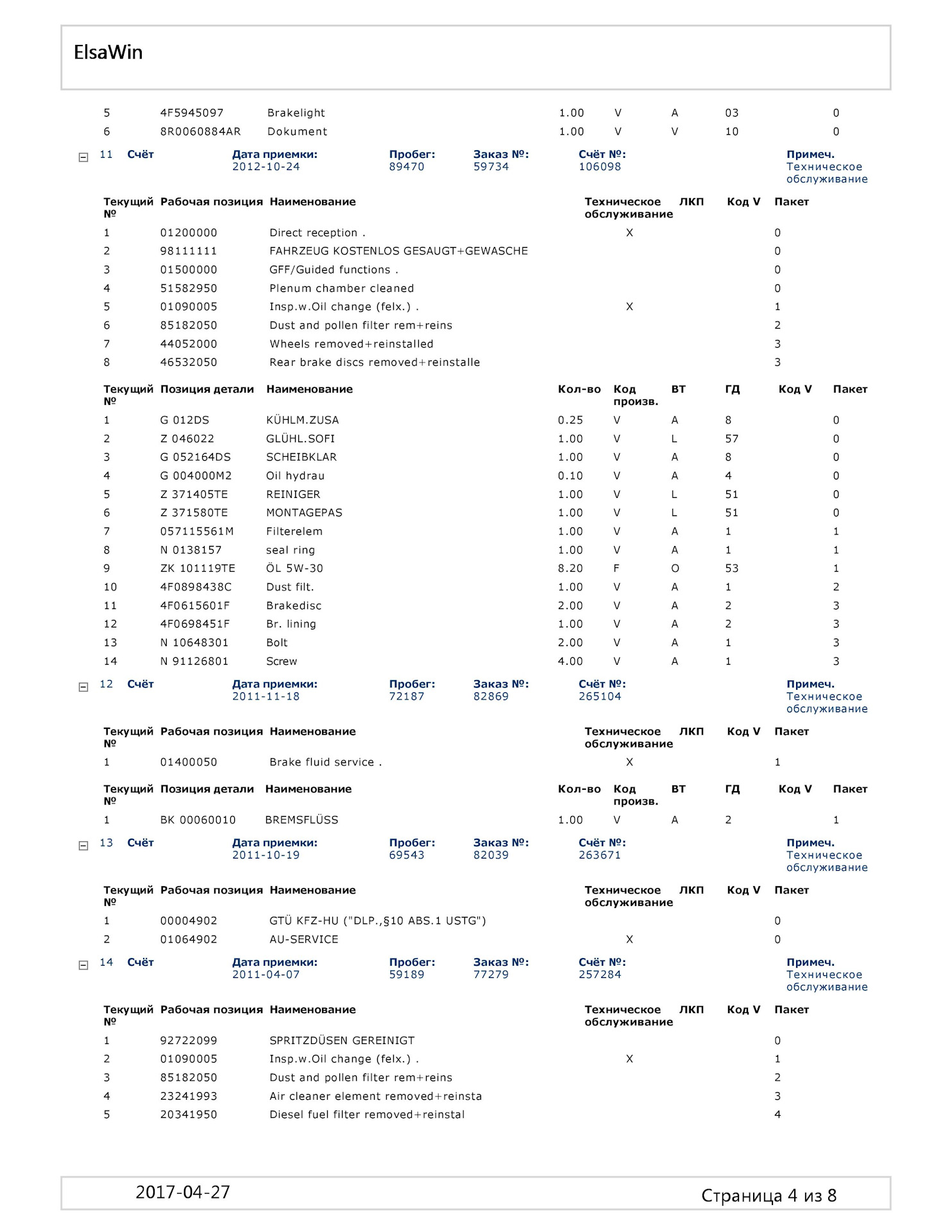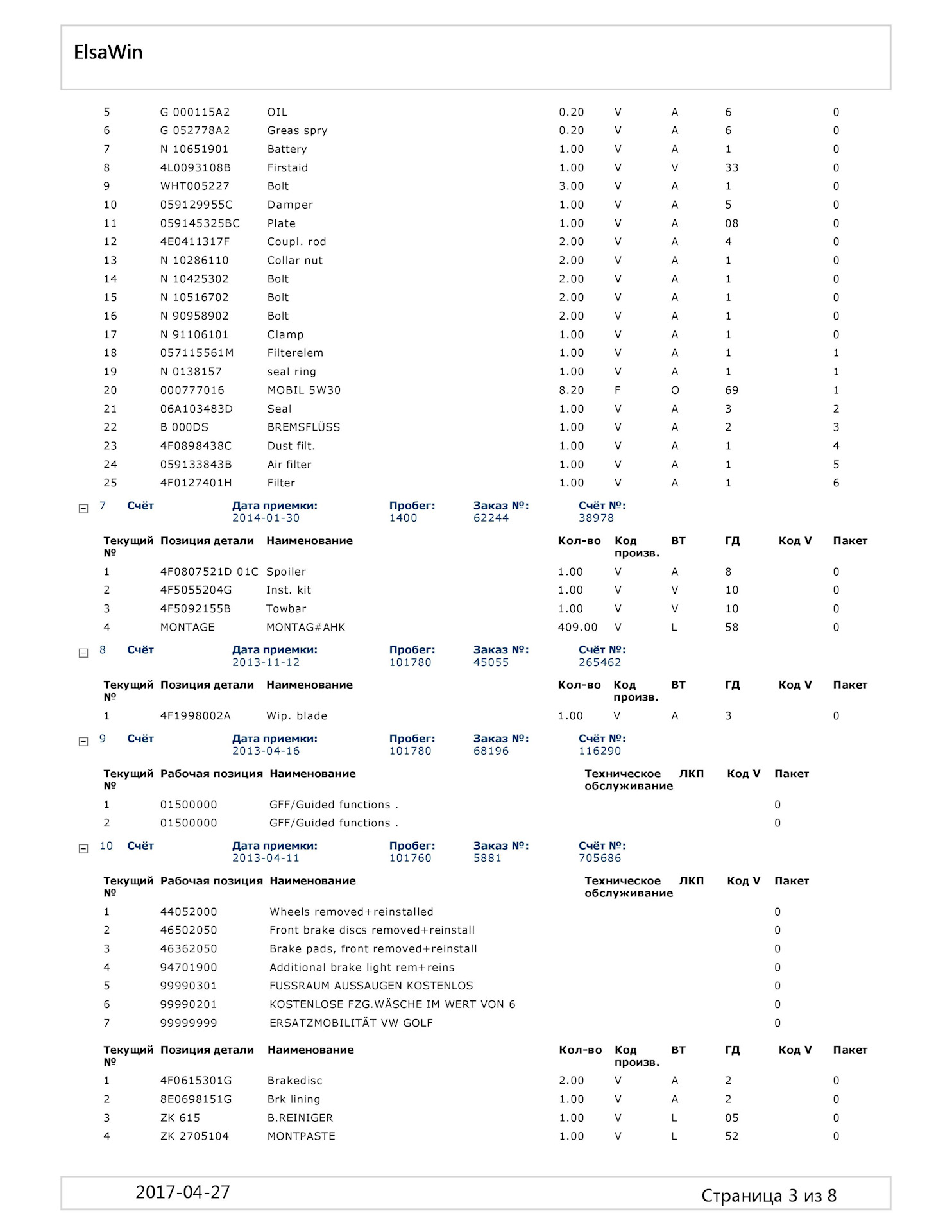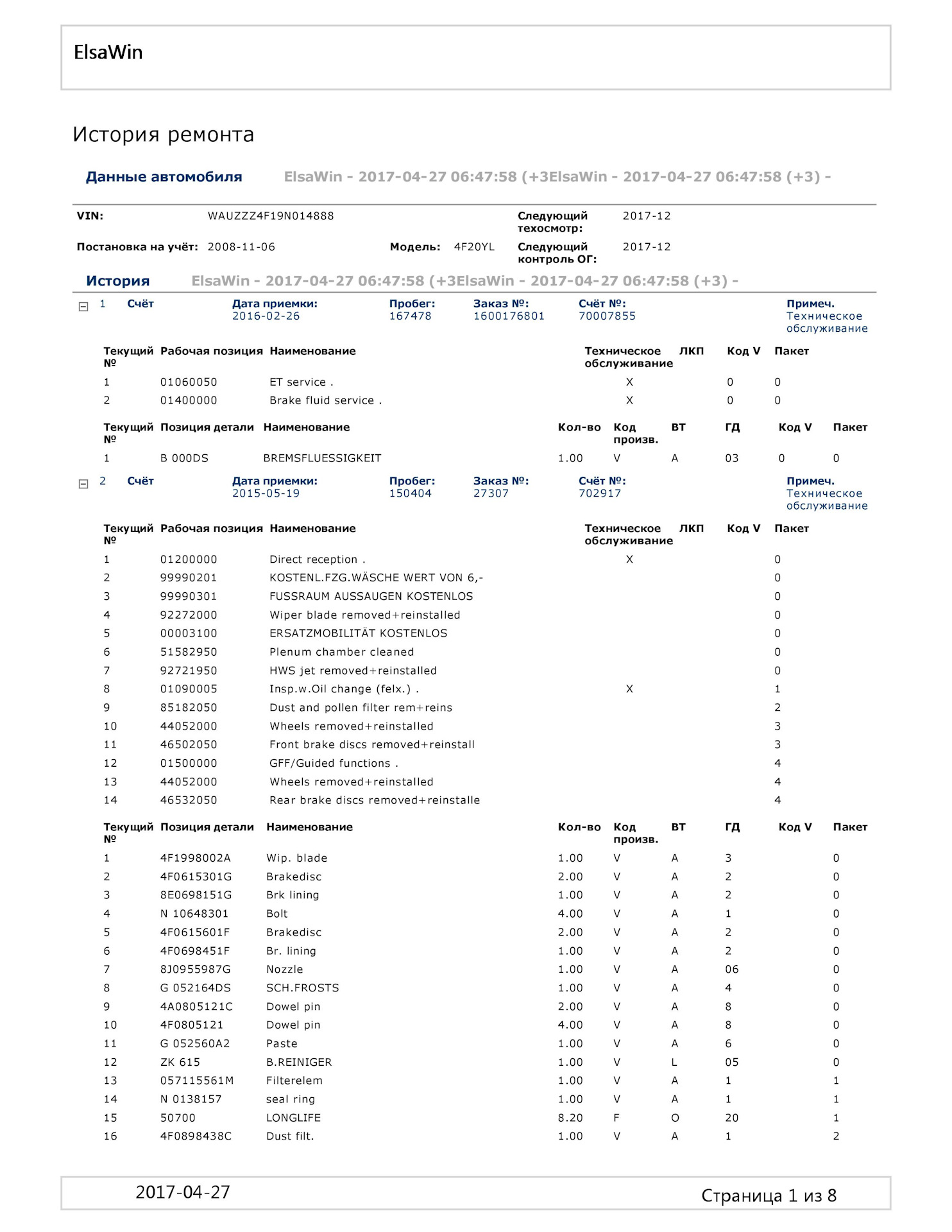 После покупки интересовал узнать что меняли, делали с машинoи до меня в Германии