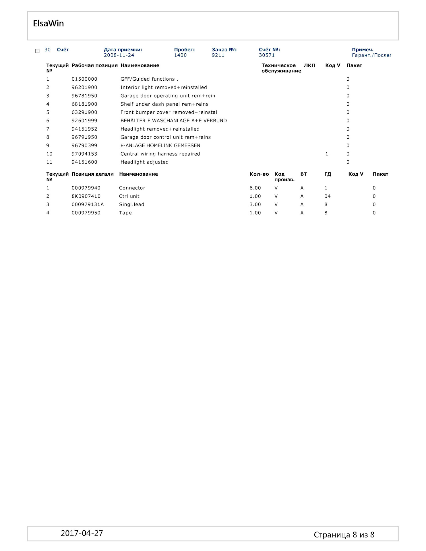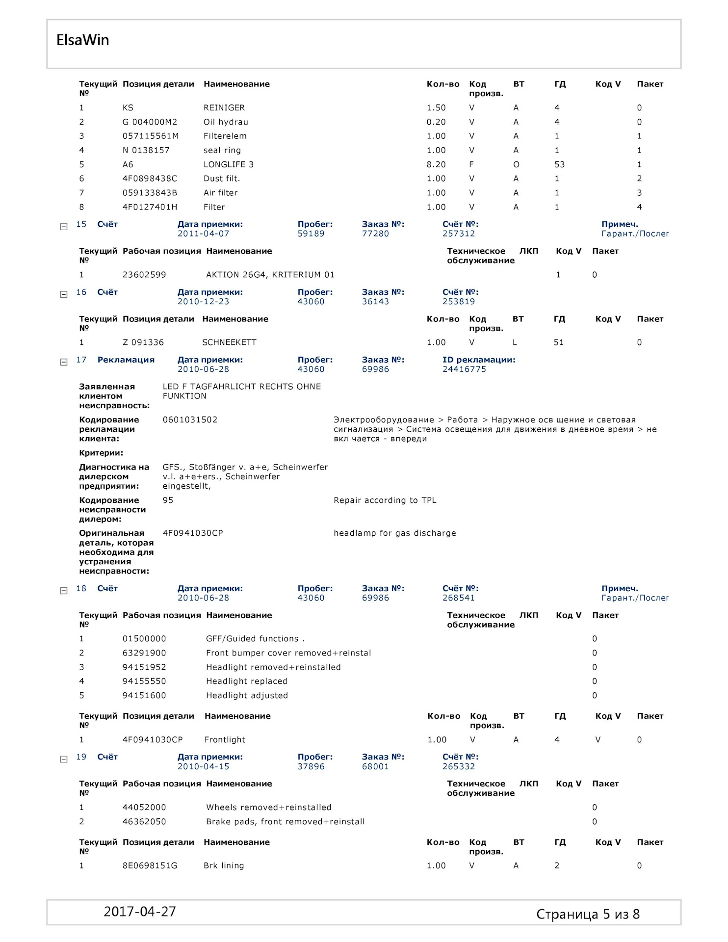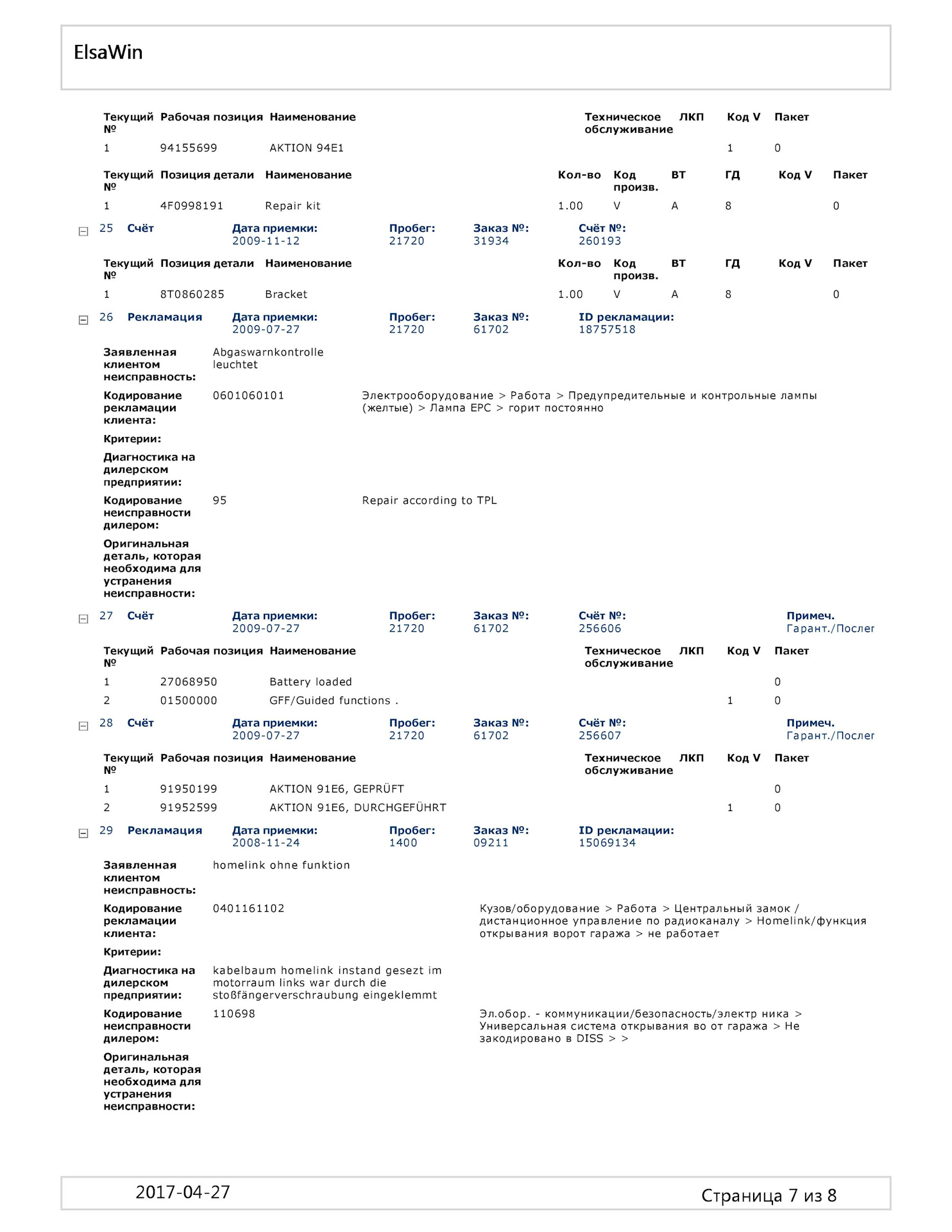 После покупки интересовал узнать что меняли, делали с машинoи до меня в Германии