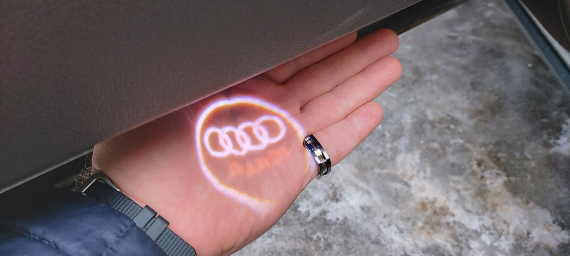 Вспомнил, что была заказана подсветка подножек с логотипом, достаточно праздничная…