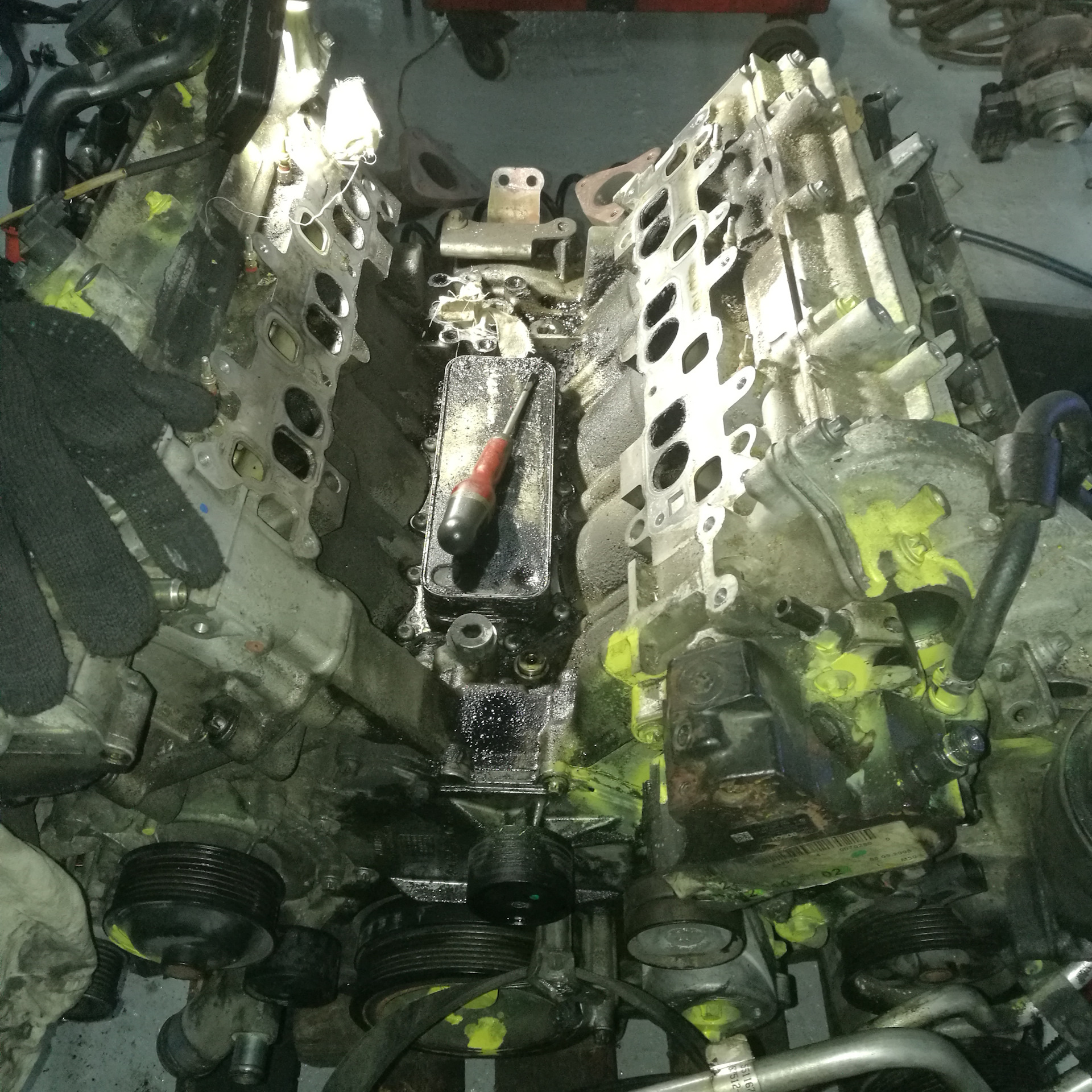 История ремонта проста. Заказываем мотор в сборе (с маленьким пробегом), ожидаем его. Приходит он чуть раздраконен, но не критично. Кое-что берем свое, кое-что не получается с косами, меняем. Снимаем турбину, 6 прокладок новых сразу, снимаем впуск, прокладки опять, основание турбины, ну и теплообменник конечно, прокладки еще. Смотрим что делать с впуском, чистим, тяги, егр. Собираем все. Меняем ролики все, проверяем стартер, генератор, насос гура, помпу, кондей и т.д. Прозваниваем сразу все свечи накаливания (меняем при необходимости). Можно сменить выпускные коллектора. Суммарно для праворуких есть небольшие нюансы, как и дорестайл-рестайл. Короче, все что можно проверить — проверяем на снятом моторе. Цены на работу в данном случае копеечные. Женим все это, соединяем обратно все, собираем морду. Проверяем сразу подачу топлива и обратку, не перепутаны ли, и все остальное. Включаем зажигание, скидываем все ошибки. Заливаем все жижи, заводим, радуемся, глушим. Заправляем кондей, ставим все защиты, прописываем новые коды коррекции форсунок, сбрасываем все адаптации. Заводим повторно. Улыбаемся до ушей ))) Едем домой. Потом катаемся по городу, всплывают недочеты, вечером едем и их устраняем. Ну и т.д. Это же жып, он не дает скучать…