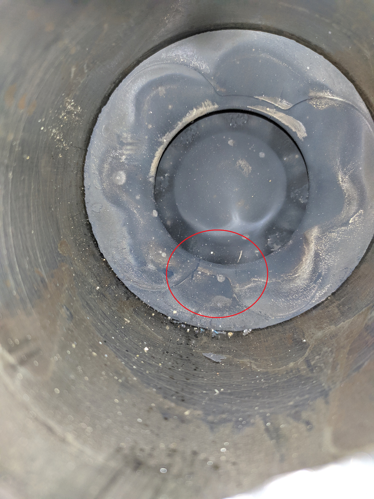 Это так оно и есть причём топливо много лилось на низах, если бы на верхах поршень был бы как будто загрызен и оплавлен