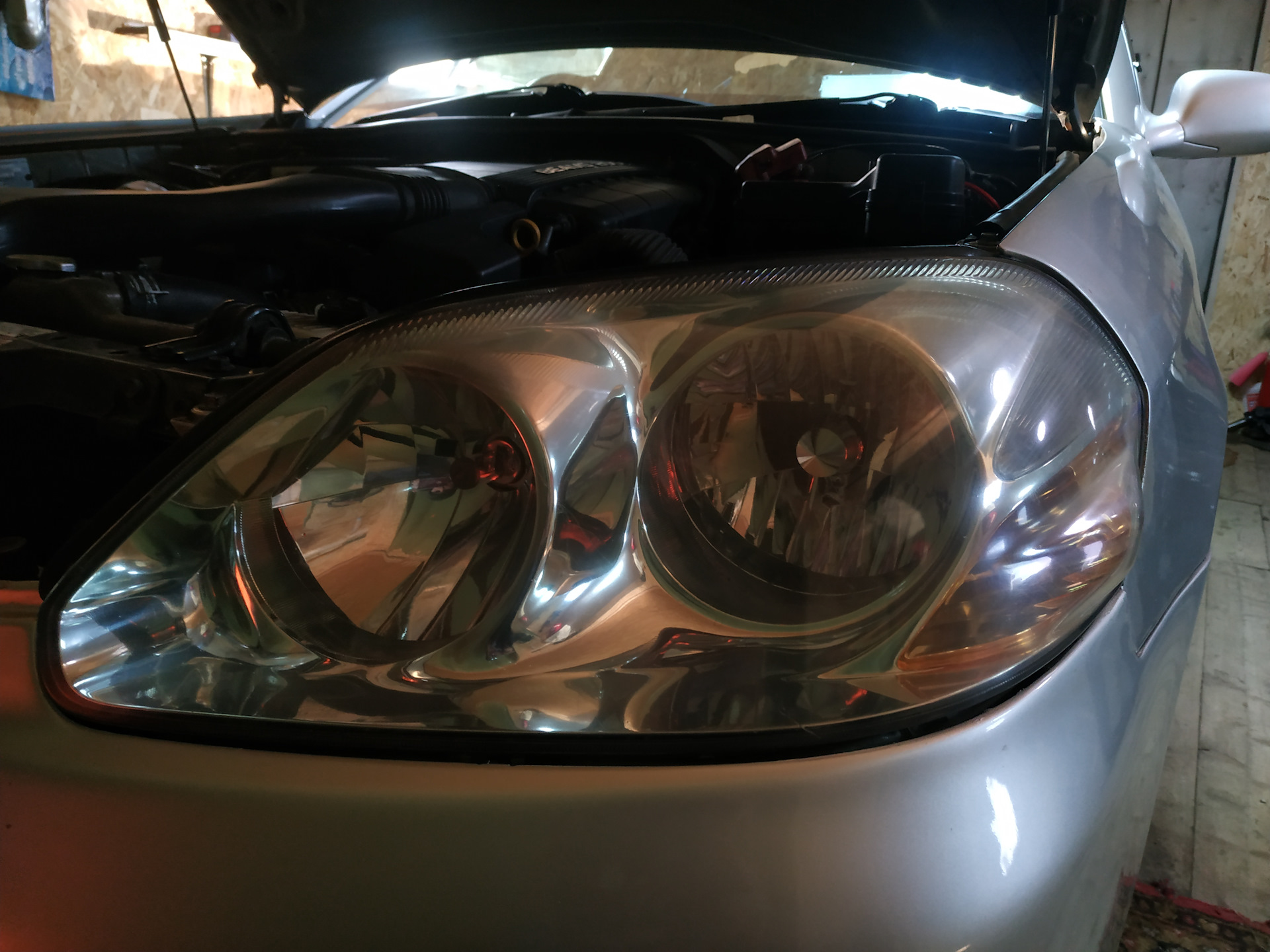 Добрался до машины, давно хотел фары освежить. Как обычно уже привычным способом : 2500 наждачка, паста, мышка с губкой средней и попер. Заматировал, полирнул — ляпота. Ещё подкинул новые лампы PIAA в туманки/ближний, плюсом нижние повторители которые запитал от габарит оснастил оранжевыми лампами. Мне нравится ( стал днём на них ездить(фото до полировки) )