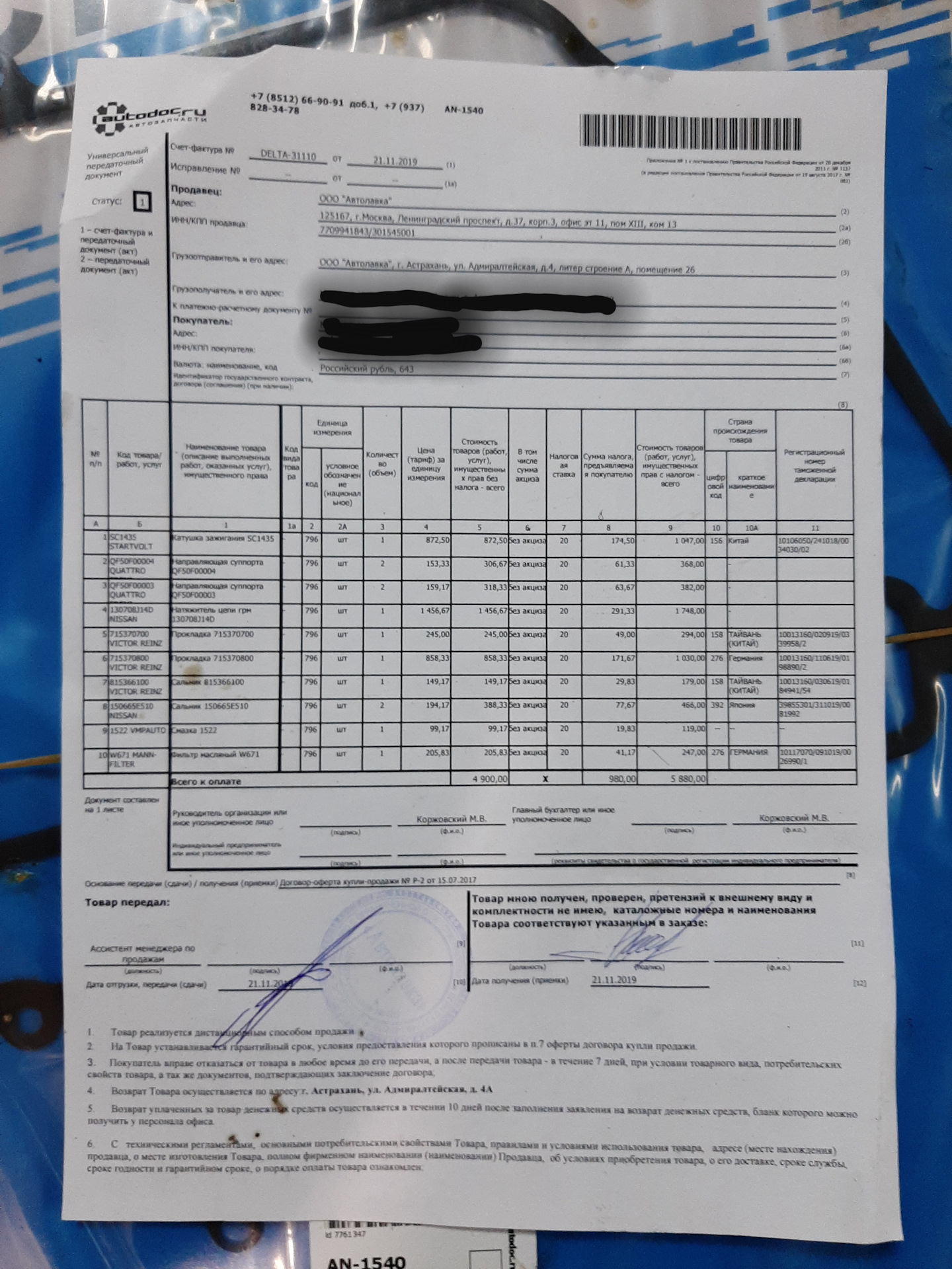 1607013 — масло моторное Lukoil Genesis Armortech 5w40 (Не кидайте какашками за лукойл, выбор был сделан специально, так как масло решил менять каждые 3500 км, подумав, лучше чаще менять, чем покупать дороже масло и менять каждые 7ткм)
