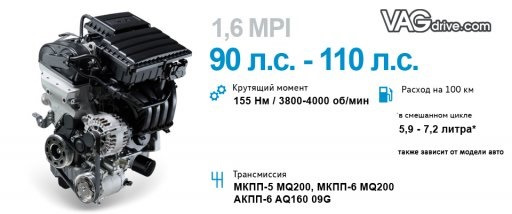 2. Характеристики двигателей 1.6 MPI семейства EA211 (90/110 л.с.)