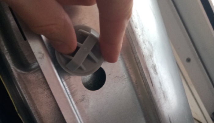 Странно, у меня он выпал сразу, как только порог прогнил и клипса выпала. И вид был как на фото. В общем что-то тут не то. Но если что я всё рассказал )