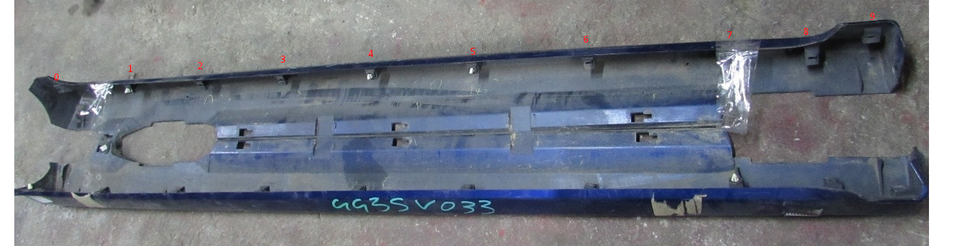 В идеале нужно 6 клипс G22C51SJ3 MAZDA. В самом пороге 6 отверстий. 6 клипс нужно вставить. Конечно можно не ставить клипсу №3 и №5. Но будут дырки в пороге, а всем знаем что это не гуд. Цена за 1 клипсу от 230р.