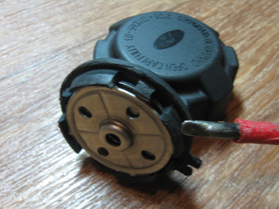 Я, как и многие, считаю, что болезнь лучше предотвратить, чем лечить, а так как текущие РО (далее радиаторы отопителя) на калине не редкость, а менять его задача не из лёгких (менял на самаре с ВП и ЕП – то ещё удовольствие), то было решено внедрить запчасти от ино в ВАЗ. Многие знают, что чаще всего РО текут из-за неисправной крышки РБ (тугая пружина, ржавчина, залипание клапана, зимой обледенение клапана). Например родную крышку я проверял на сброс давления, стравливать она начинала на 1.6 очка, что конкретно многовато, можно уменьшить пружину и подогнать давление, но от обмерзания клапана (3 маленькие отверстия) и гниения пружин это не спасёт.