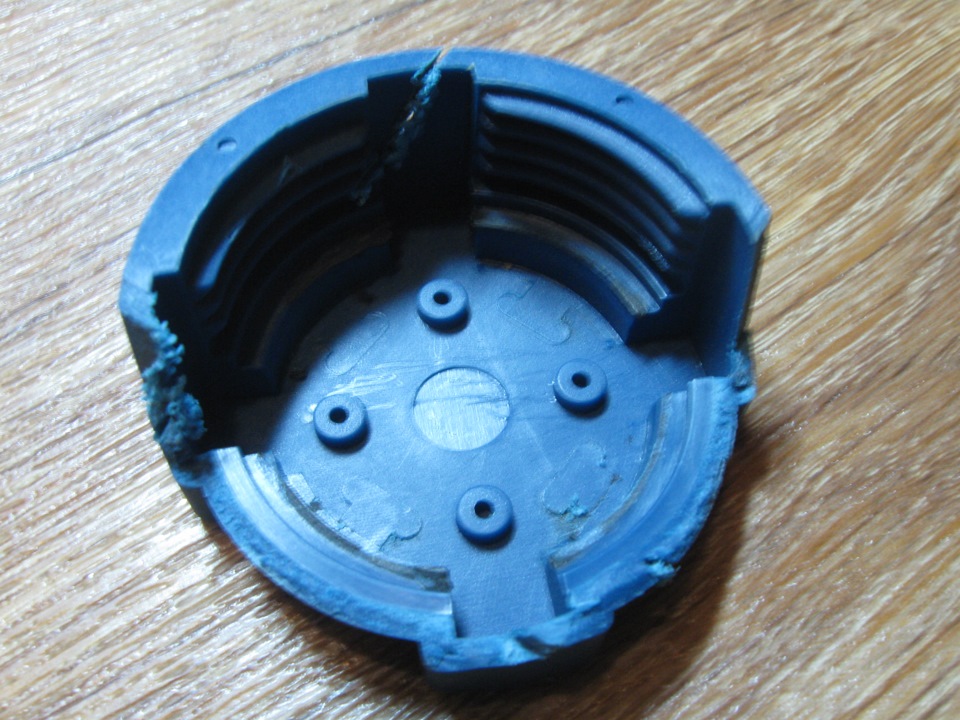 У Мейле клапан приклеен к корпусу крышки и просто так его не достать. Для этого я немного распилил крышку и выломал часть корпуса после чего аккуратно поддел отвёрткой клапан и он отклеился от корпуса.