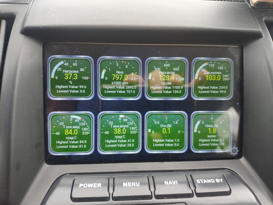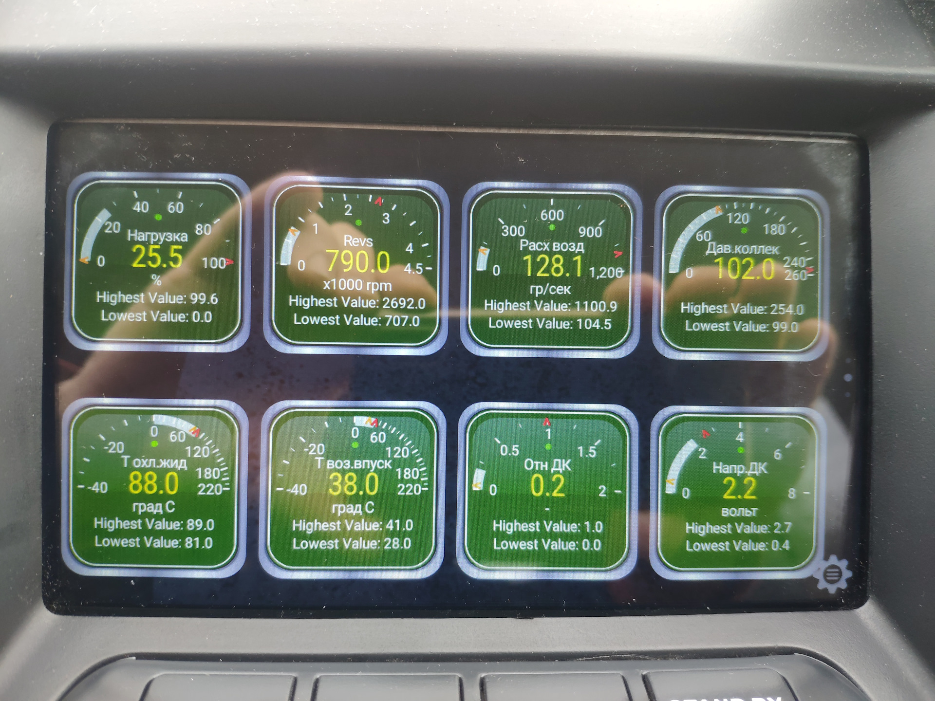 У меня: Нагрузка на двигатель 27, но очень колоссально отличается расход вбираемого воздуха (MAF) 12,4 против ваших 128,1.