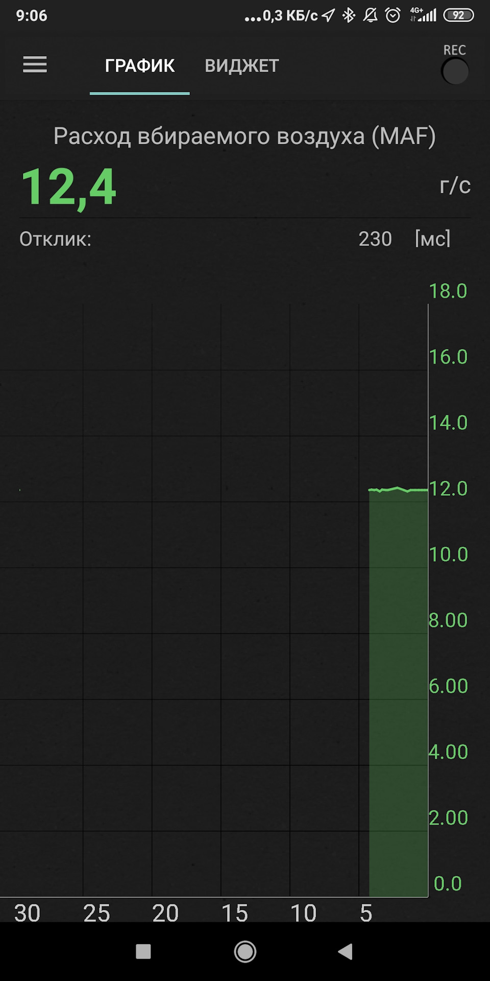 Видимо не тот датчик глянул, массовый расход воздуха 104,77 г/сек