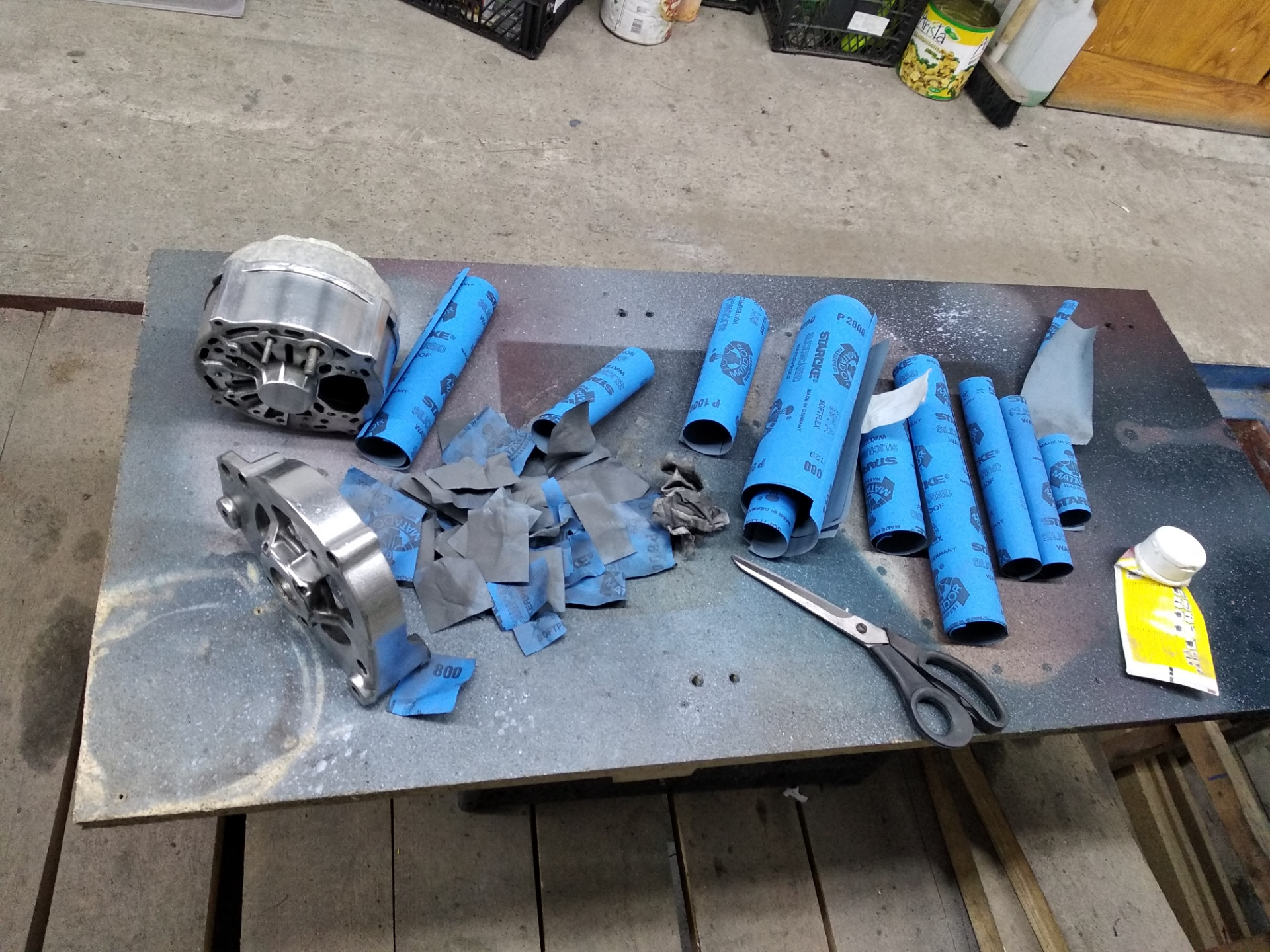 Зачистил всё коралловым кругом и металлическим шетками насадками на дрель, некоторые детали покрыл эпоксидным грунтом, затем красил в два вида цвета краски, металлик, после покрыл в два слоя лака, корпус гене решил шлифонуть в ручную и полировал так-же, нождачки использовал градации: 600, 800, 1000, 1500, 2000, паста G3 и войлок на финиш. Мне итог нравиться.