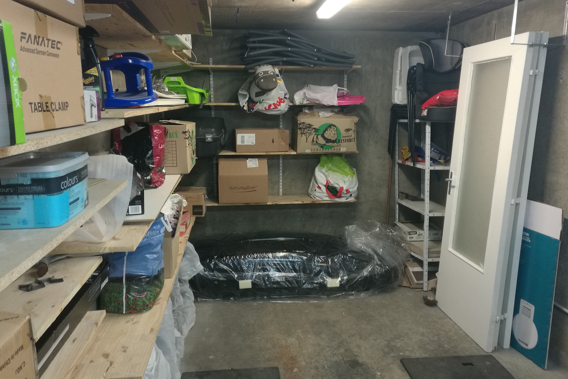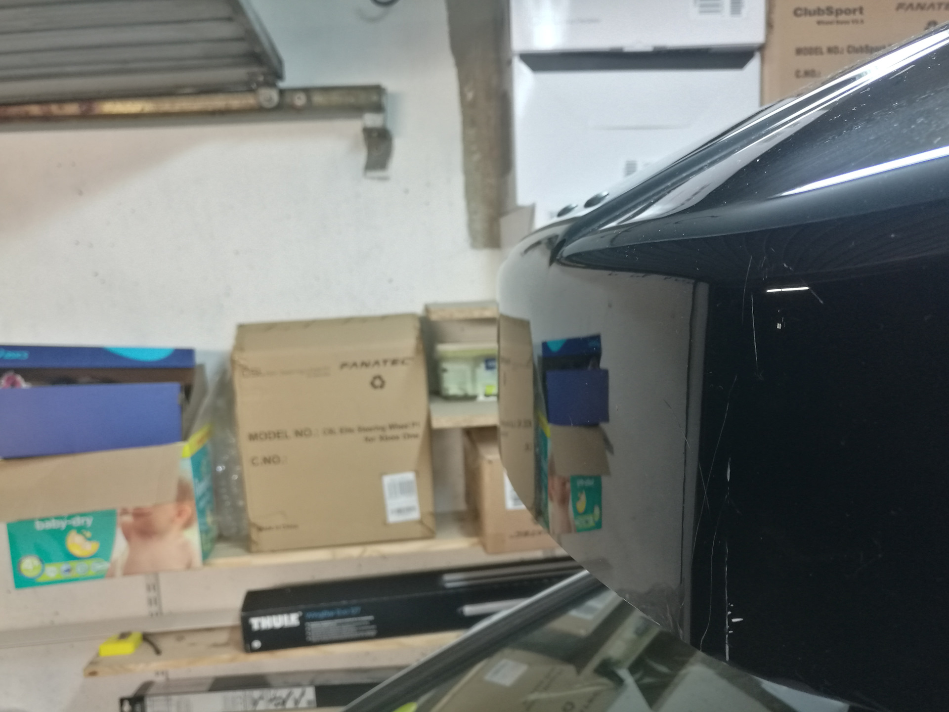 С горем пополам как-то спустил ее вниз. В гараже пришлось немало повозиться чтобы найти место для бокса, переносить плитку, колеса и т.д. и т.п. Видимо во время всех этих телодвижений я и поцарапал поверхность бокса в нескольких местах. Печалька…