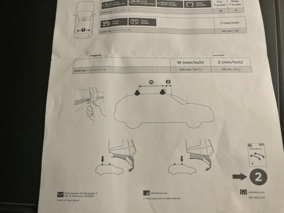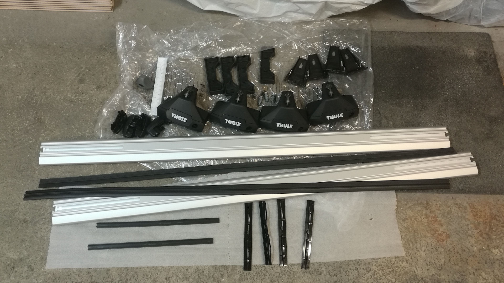 Но для начала надо было приобрести поперечины и крепления. На сайте Thule вводишь свою модель автомобиля – и тебе показывают подходящие варианты. В моем случае это были: поперечины Thule 711300 WingBar Evo 127cm за €112; т.н. Foot Pack (крепление с замком) Thule 710500 Evo Clamp за €102.04 и ножки крепления – Kit Thule 145027 за €45.96, разработанные специально для Audi A4 (B9). Таким образом, сумма за эти детали составила €260.