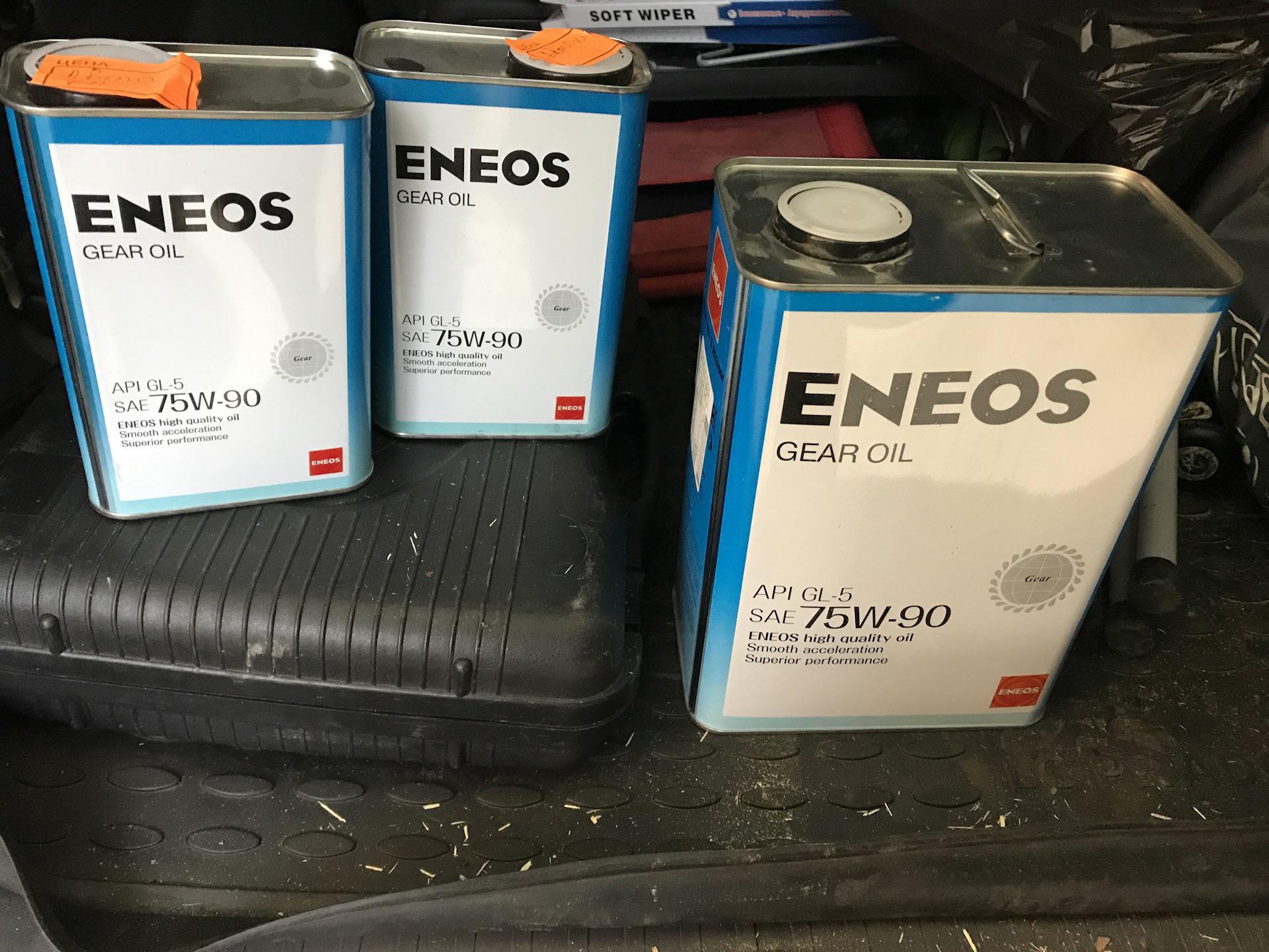 2. Масла в редукторах и раздатке менял как раз для успокоения. В редукторах масло было темное, а в раздатке гораздо светлее. Цена на оригинальное масло показалась необоснованно завышена, поэтому купил из того, что было в наличии и подходило по допускам. Приобрел Eneos 75W-90 API GL 5 в количестве 6 литров (обошлось 2800 руб.). На редуктора вышло где-то 4,5 литра и соответственно в раздатку около 1,5 литров. Работа 1000 руб.