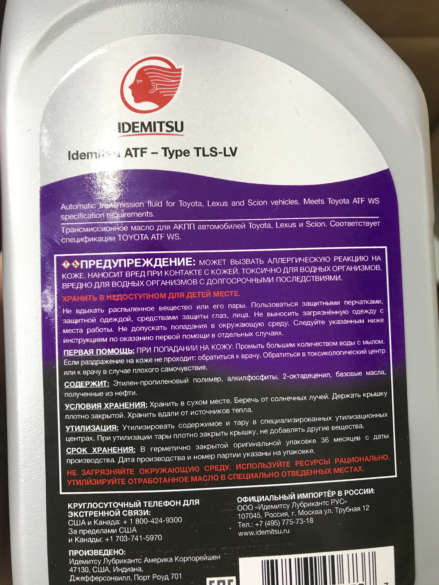 6. Заменено масло в АКПП, тоже превентивная мера, и судя по цвету наверное не зря, что не стал откладывать в долгий ящик. Среди всех вариантов изложенных на драйве по выбору масла я остановился на IDEMITSU 30040096750, на этикетке заявлено как полная замена TOYOTA ATF WS. Цена за литровую тару 576 руб. У меня было всего 11 литров. Также прикупил фильтр JS ASAKASHI JT437K 1519 руб, качество этих фильтров мне понравилось еще когда в камри менял масло в коробке, плюс в комплектность входит прокладка поддона.