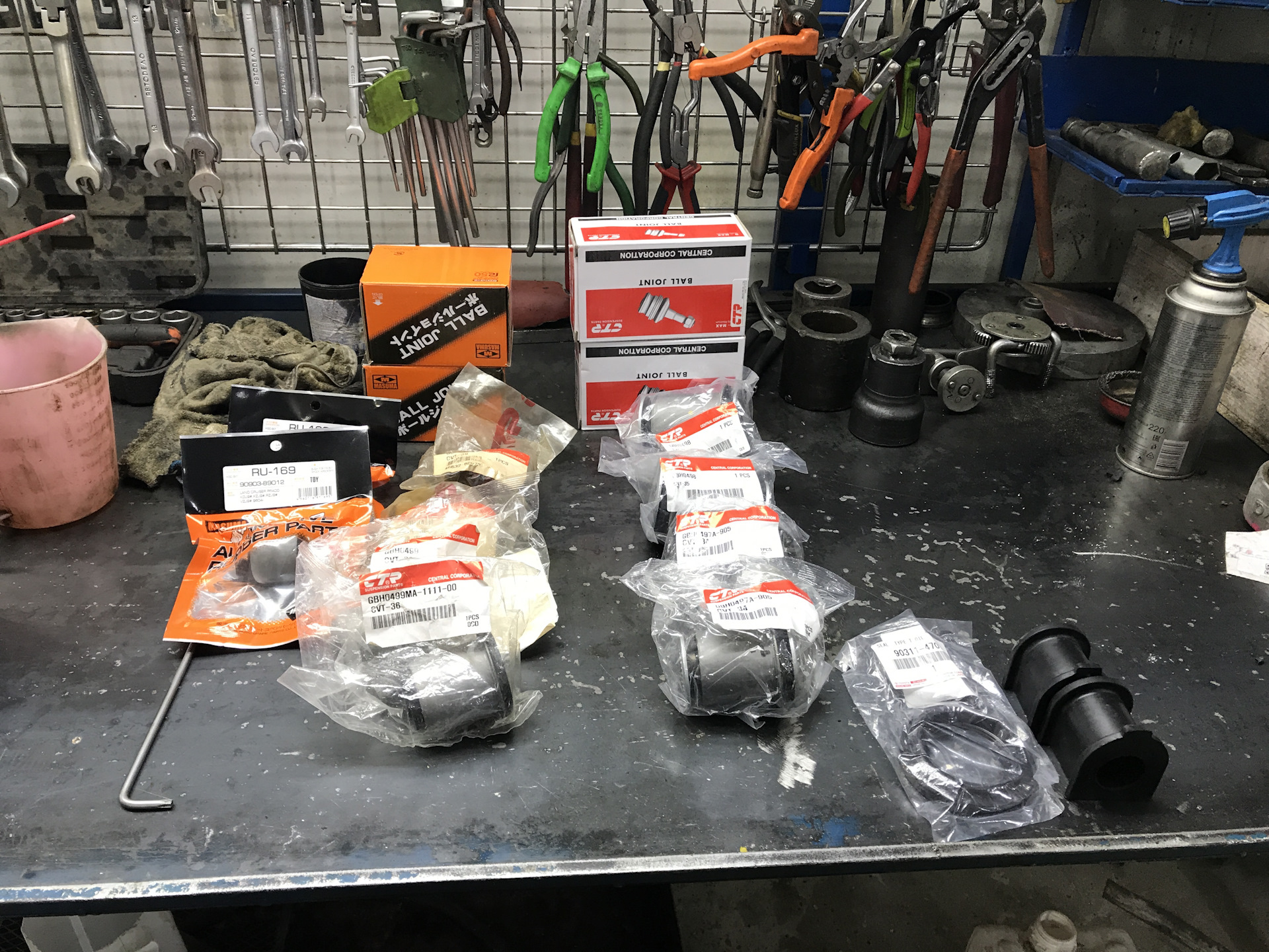 — в верхние рычаги: опоры шаровые MASUMA MB3841 — 1714 руб. за пару и сайленты (передние и задние) CTR CVT 36 — 444 рубля за штуку.;