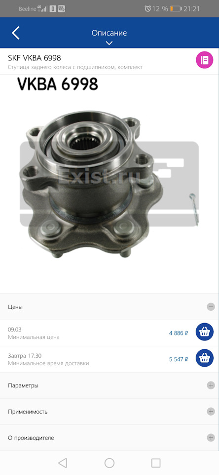 неделю назад заказал 2 задние ступицы SKF VKBA6998 по 3850руб\шт … пока не ставил, но говорят хорошие