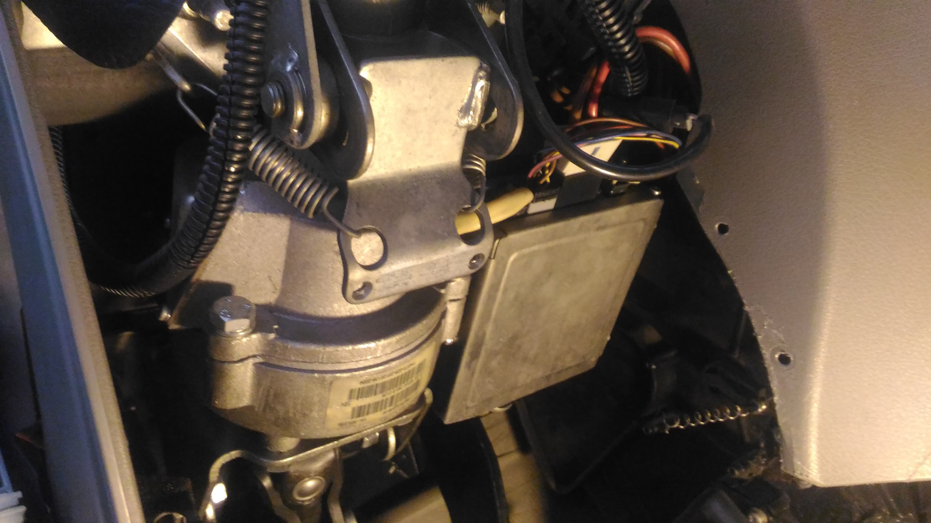 Сегодня обнаружил старые фотки и вспомнил, что есть незаконченная история по ремонту электро-усилителя руля(махачкалинский).Первая часть здесь . Ошибка C1044:неверная последовательность положения ротора двигателя.Выделывались оптопары — довольно распространенный глюк, судя по количеству записей на D2.Решение — пропайка контактов.Паяльщик с меня не очень, мягко говоря), поэтому скинул ЭУР и отвез на работу к нашему нормальному паяльщику.Можно было, конечно, весь усилитель не тащить, а только плату, но не было времени, поэтому так в сборе кинул в багажник, отвез, на работе спокойно раскидал, наметил места закрутки болтов, что б потом так же всё выставить и прикрутить, пропаяли, собрали — всё, ошибки нет.